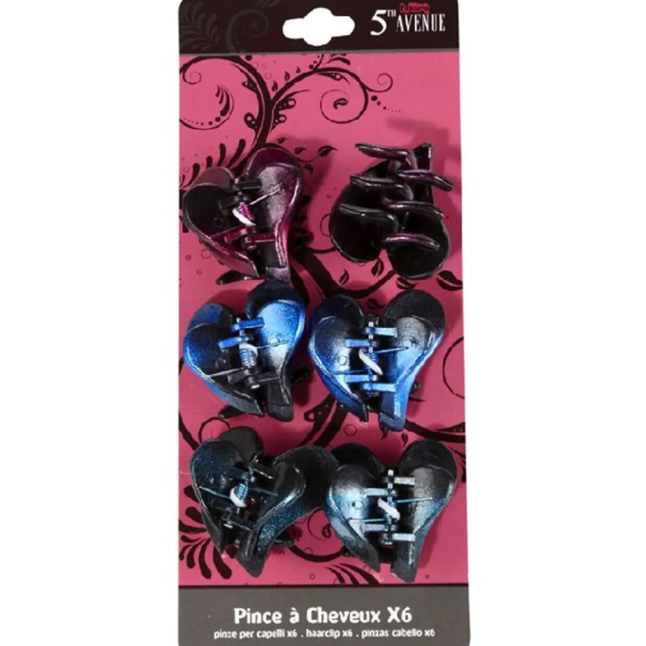 6 pinces à cheveux de dim. 4x4x3 cm, plastique.