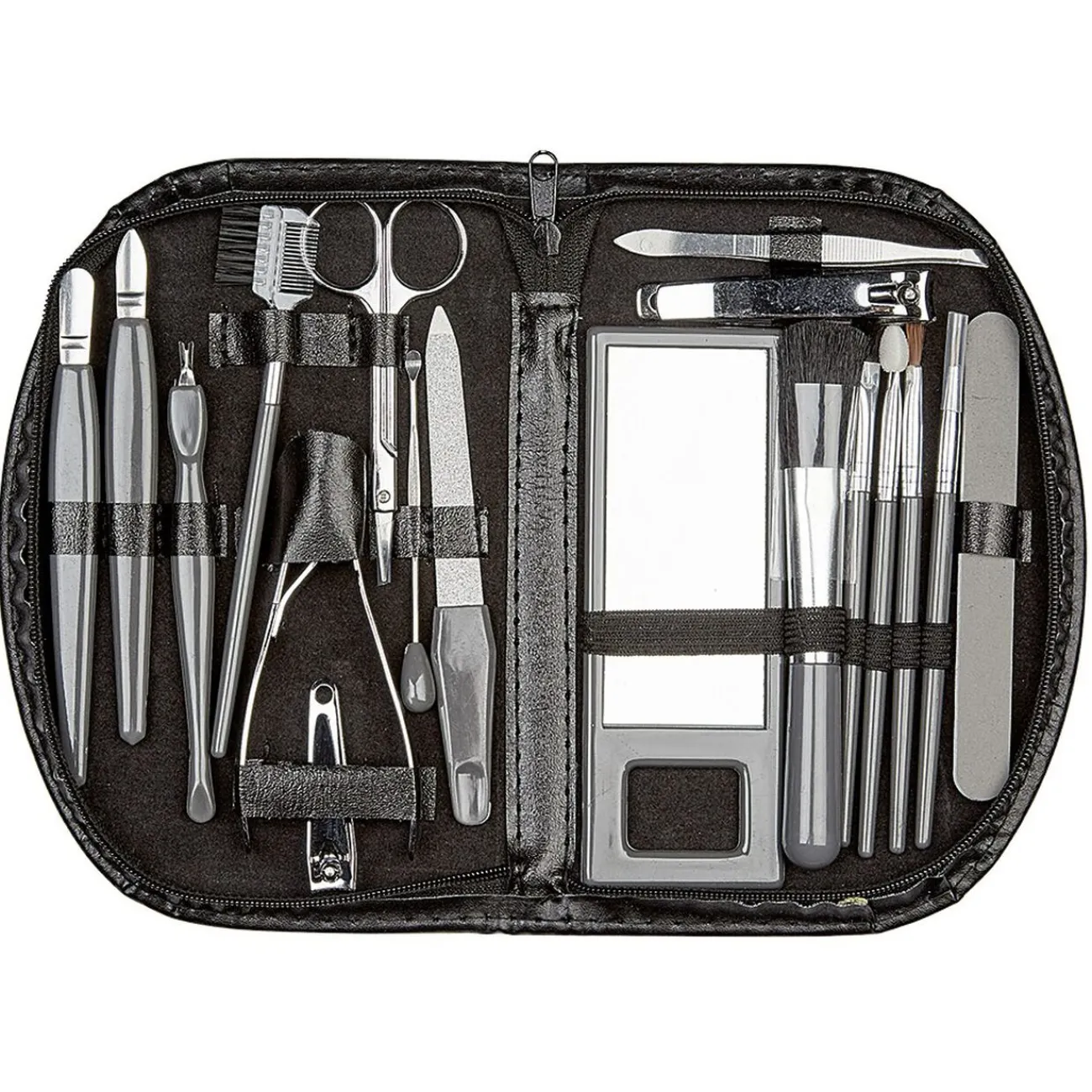 Ce set est composé de 18 pièces avec trousse de rangement incluse – Couleur noire – Dimensions : L17,7 x P11,8 x H2,7 cm – Matières : plastique et métal