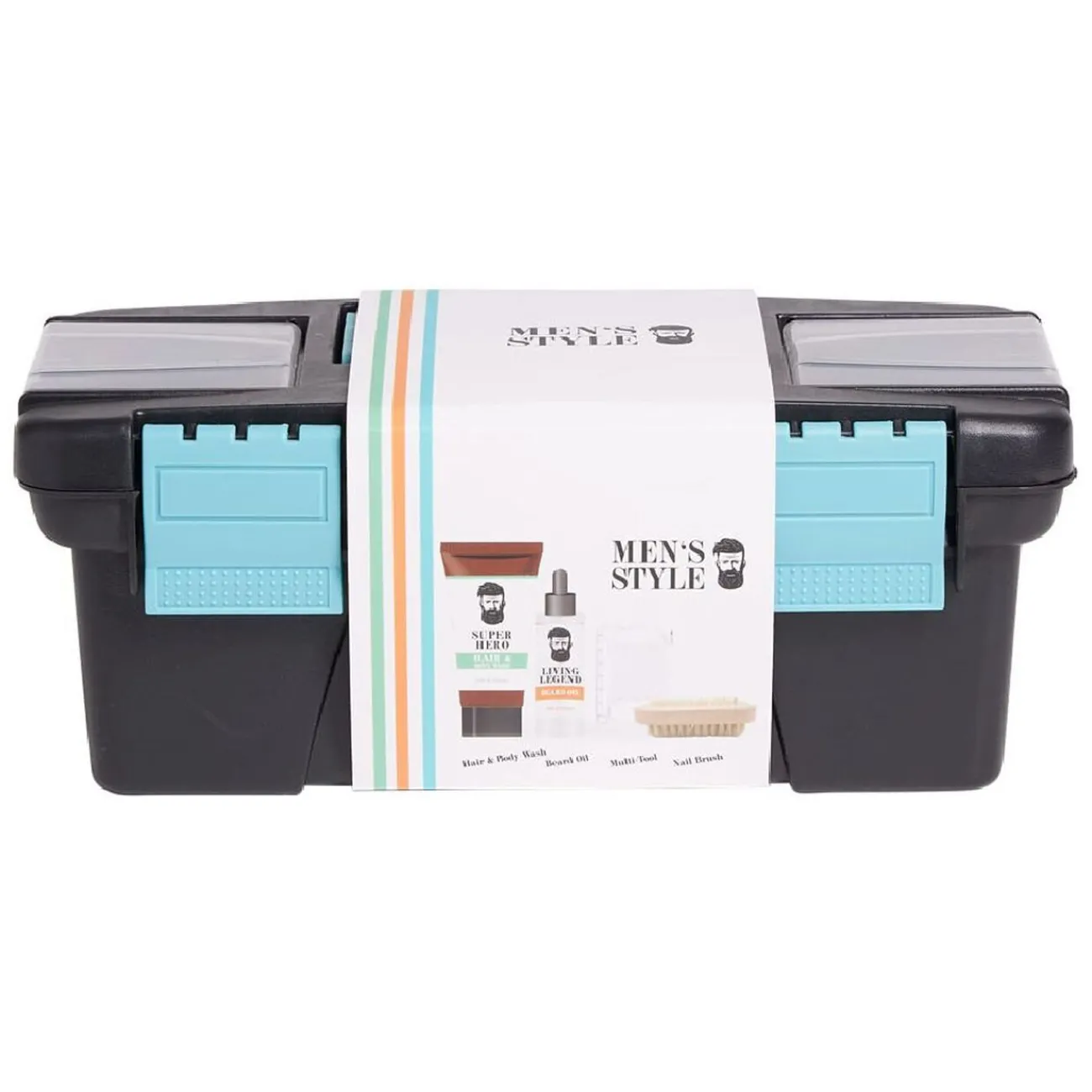 Ce coffret cadeau Men’s Style sous forme de mallette à outils comprend 3 accessoires pour le bain et le corps (1 gel douche corps et cheveux, 1 huile pour barbe, 1 brosse à ongles) ainsi qu’une carte outil multifonction au format carte de crédit regroupant de multiples fonctionnalités très utiles pour la survie et le camping en plein air (tournevis, découpe, ouvre-bouteille, ouvre-boîte…).