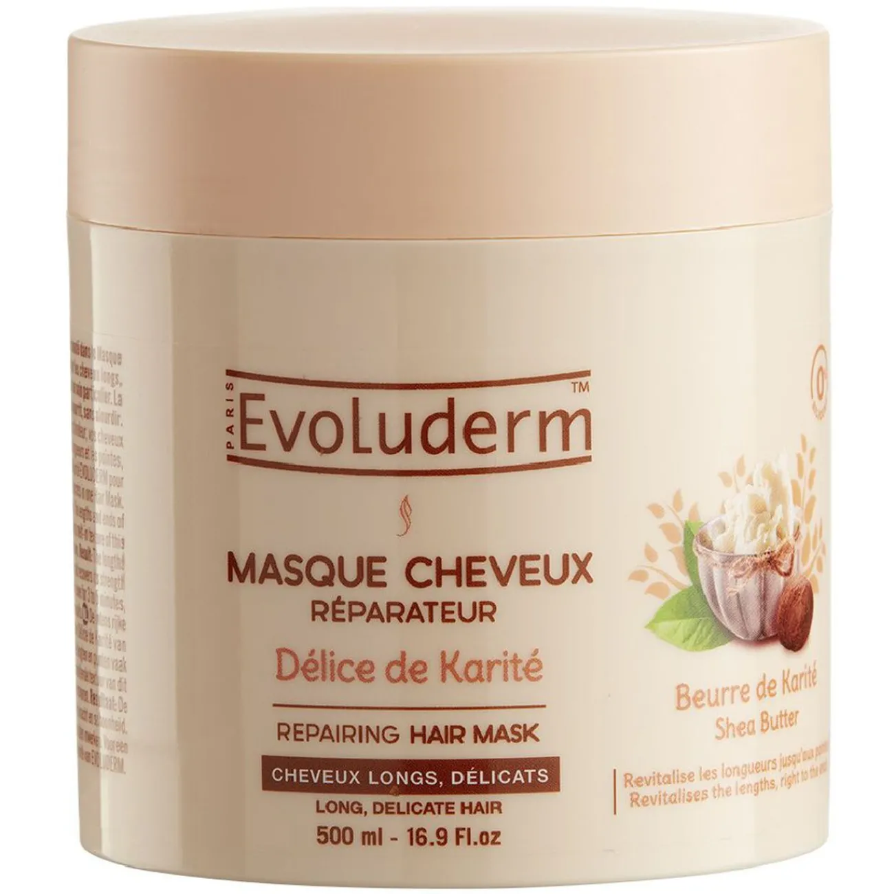 Le masque réparateur Evoluderm délice de Karité est spécifiquement formulé pour prendre soin des cheveux longs et délicats.