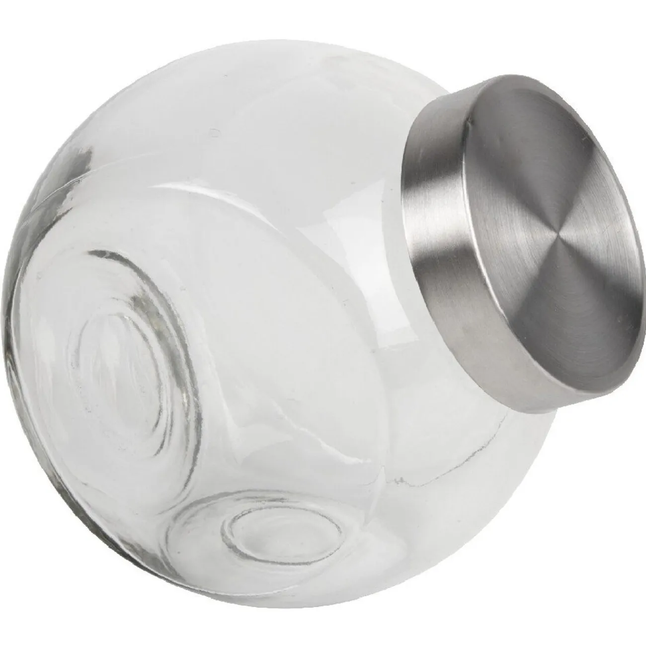 Bocal incliné en verre avec couvercle en métal, dim. 21x12x21 cm.