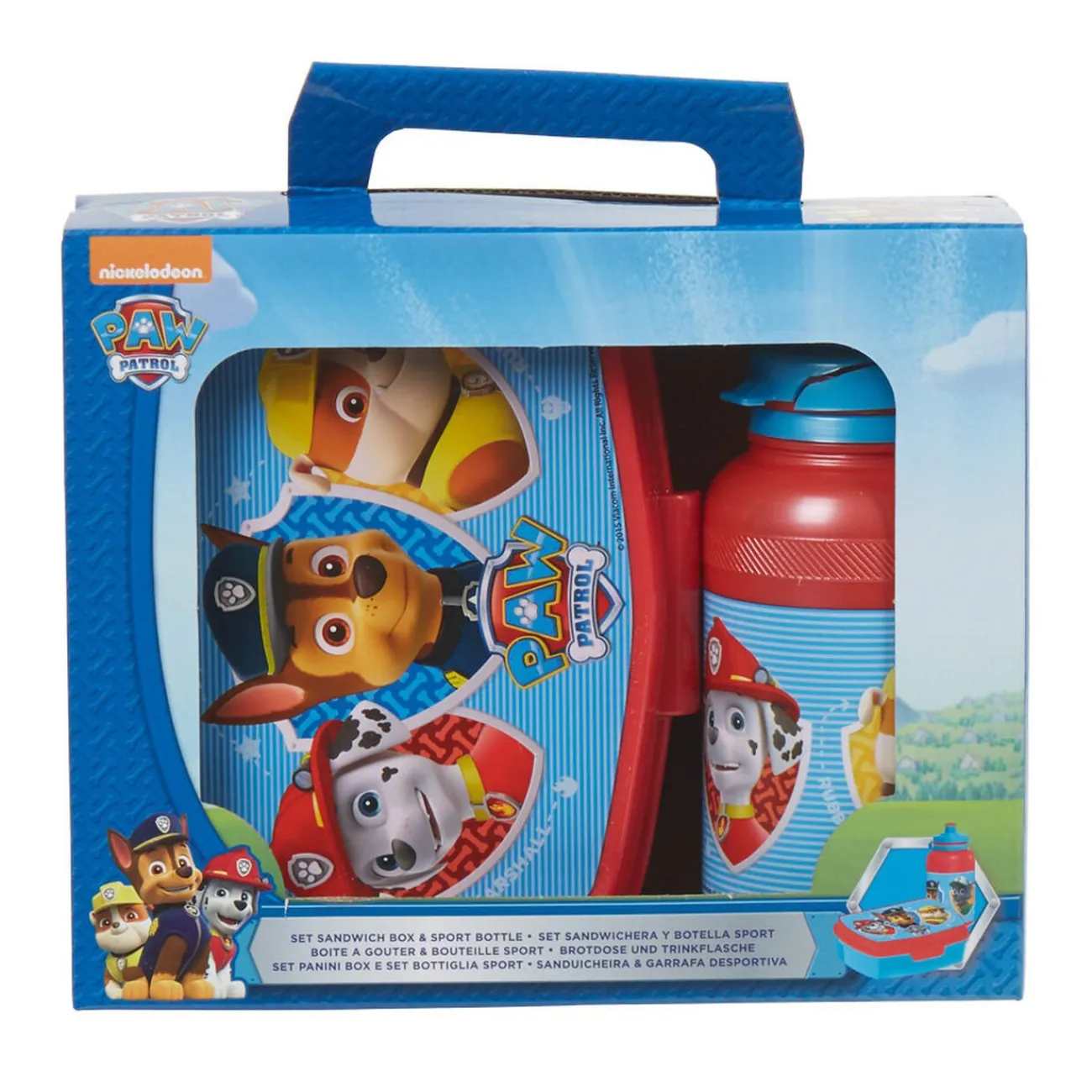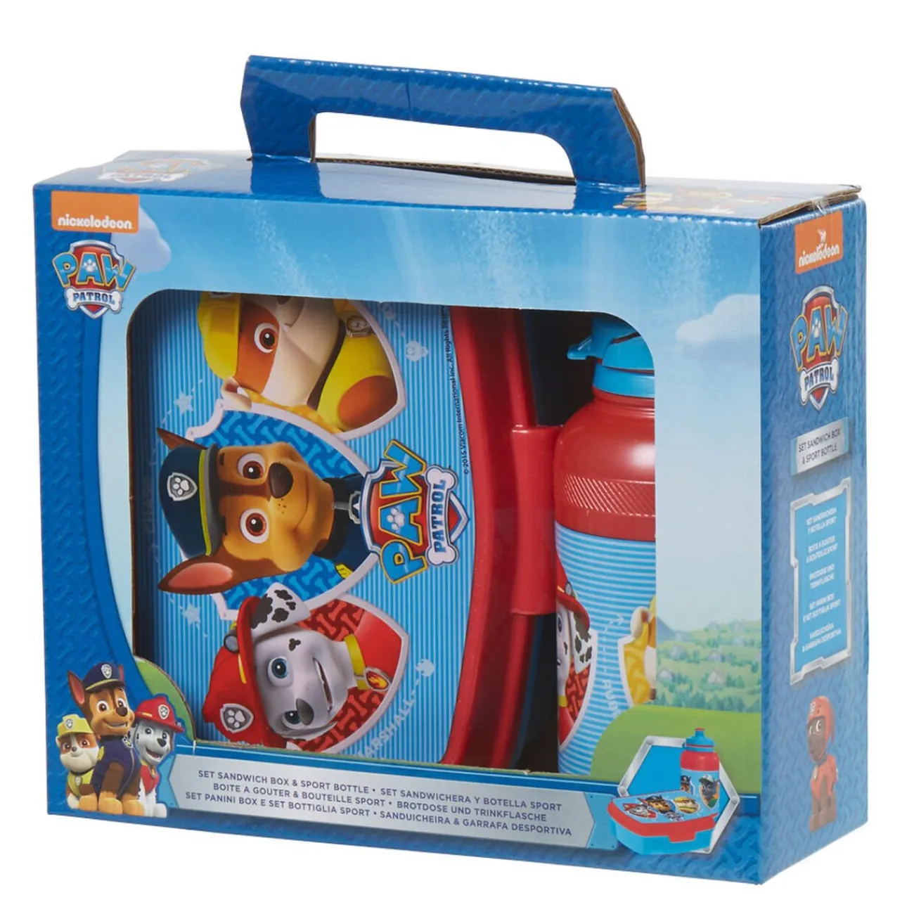 Set de 1 boîte à goûter ou sandwich et 1 gourde design Pat Patrouille.