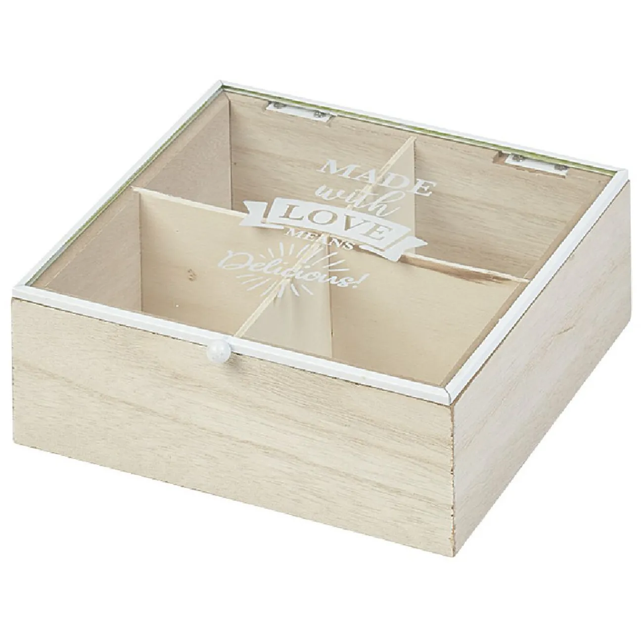 Rangez votre thé dans cette jolie boîte décorée de l’inscription « Made with love means delicious » et dotée de 4 compartiments.