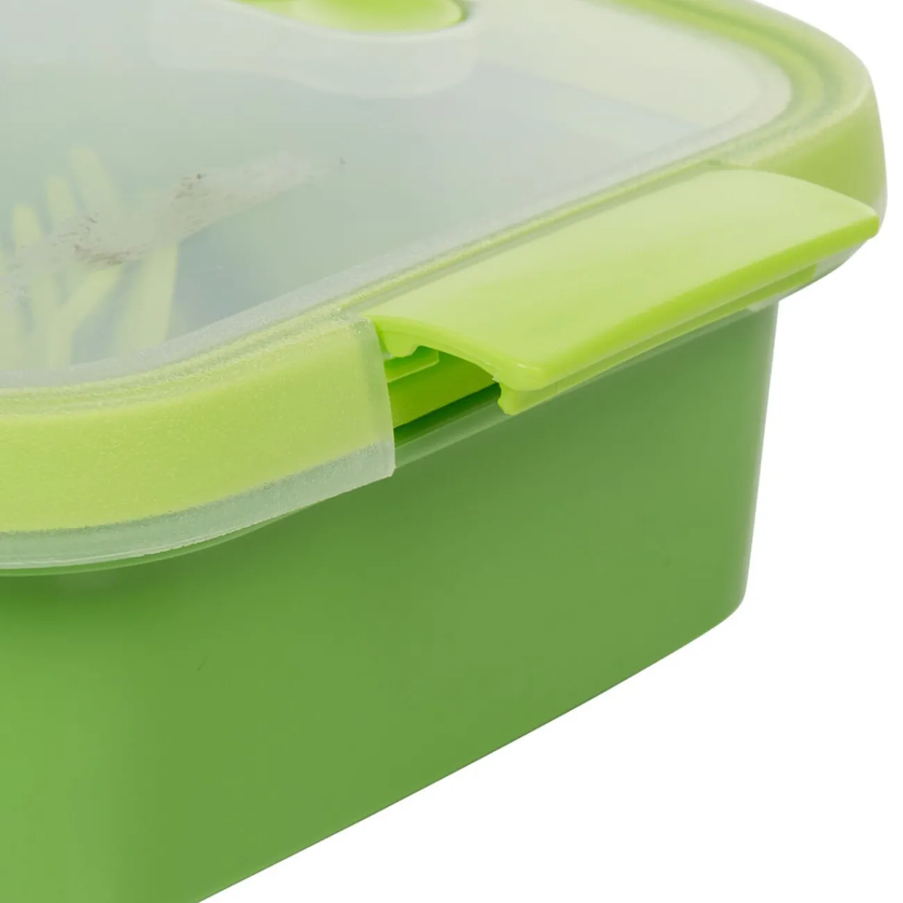 Boîte alimentaire curver carrée verte avec ouverture par clips.