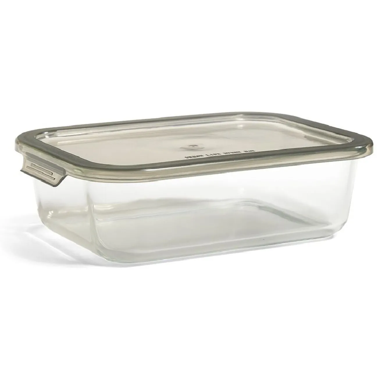 Boîte rectangulaire en verre avec couvercle à clips et joint étanche d’une capacité de 1,5L. Solide et multifonction, cette boîte translucide vous servira pour la conservation de vos plats au réfrigérateur, les réchauffer et les transporter sans risque partout avec vous !