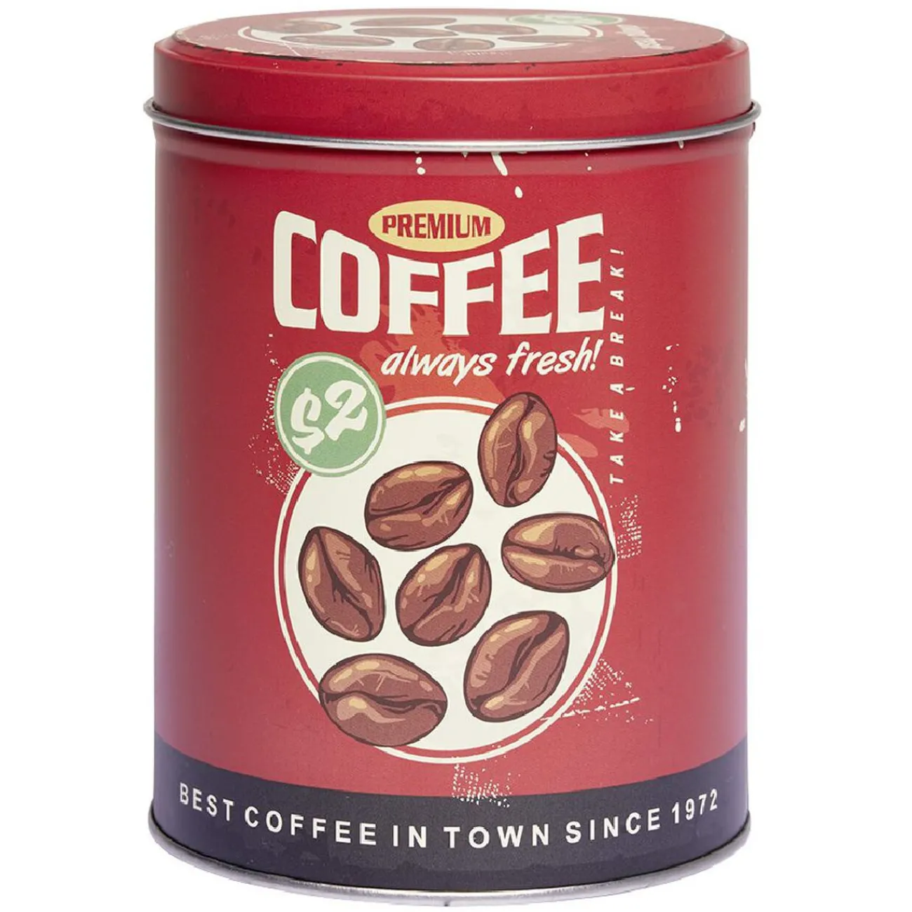 Boîte ronde décorative en métal pour la conservation des aliments secs.