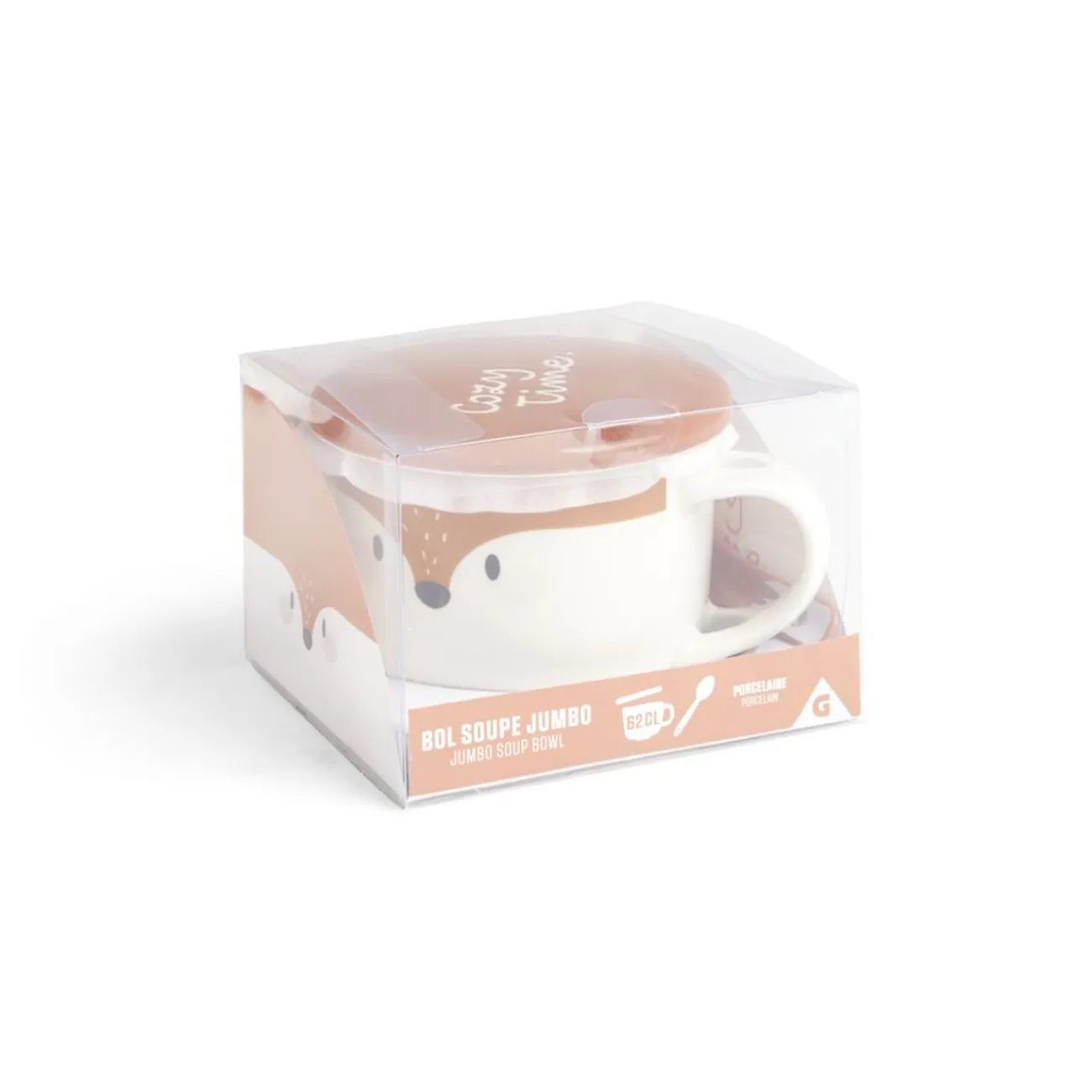 Ce bol jumbo spacieux avec cuillère et couvercle assortis est parfait pour vos portions de soupe, céréales, ou plats réconfortants.
