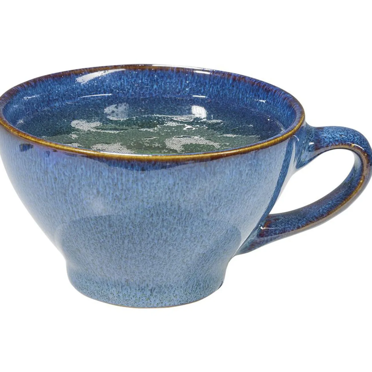 Bolée à cidre avec anse en grés bleu ou blanc.