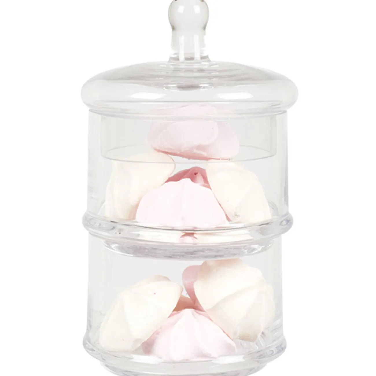 Bonbonnière à 2 niveaux, dim. Ø11xh.19,5 cm, verre.