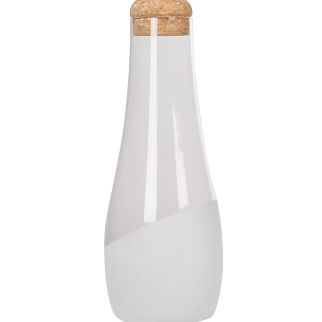 Bouteille carafe à eau en verre transparent avec fond satiné et bouchon en liège.