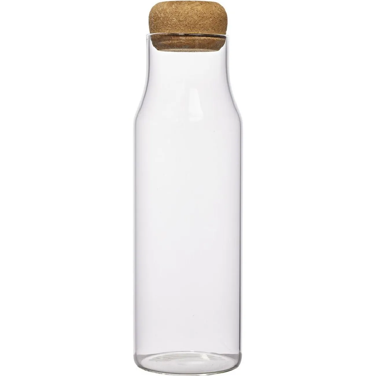 Bouteille en verre et son joli bouchon de liège. Transparente, vous pourrez à tout moment connaître le niveau de votre boisson. Cocktail, soda, eau… à remplir selon vos envies !
