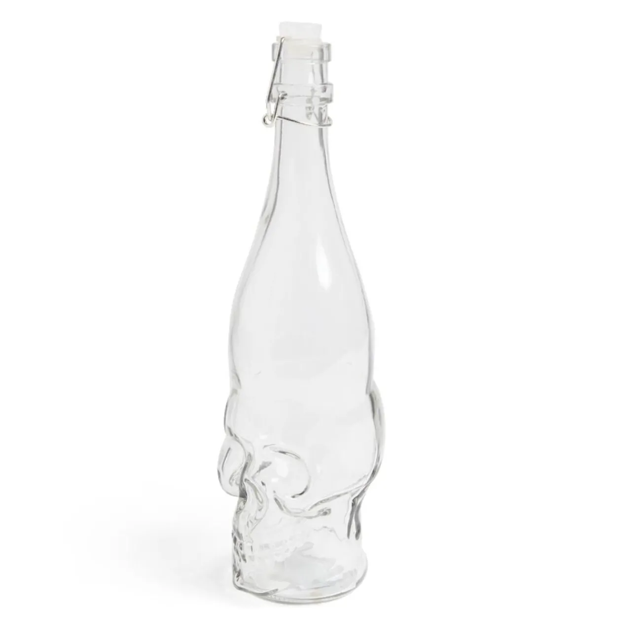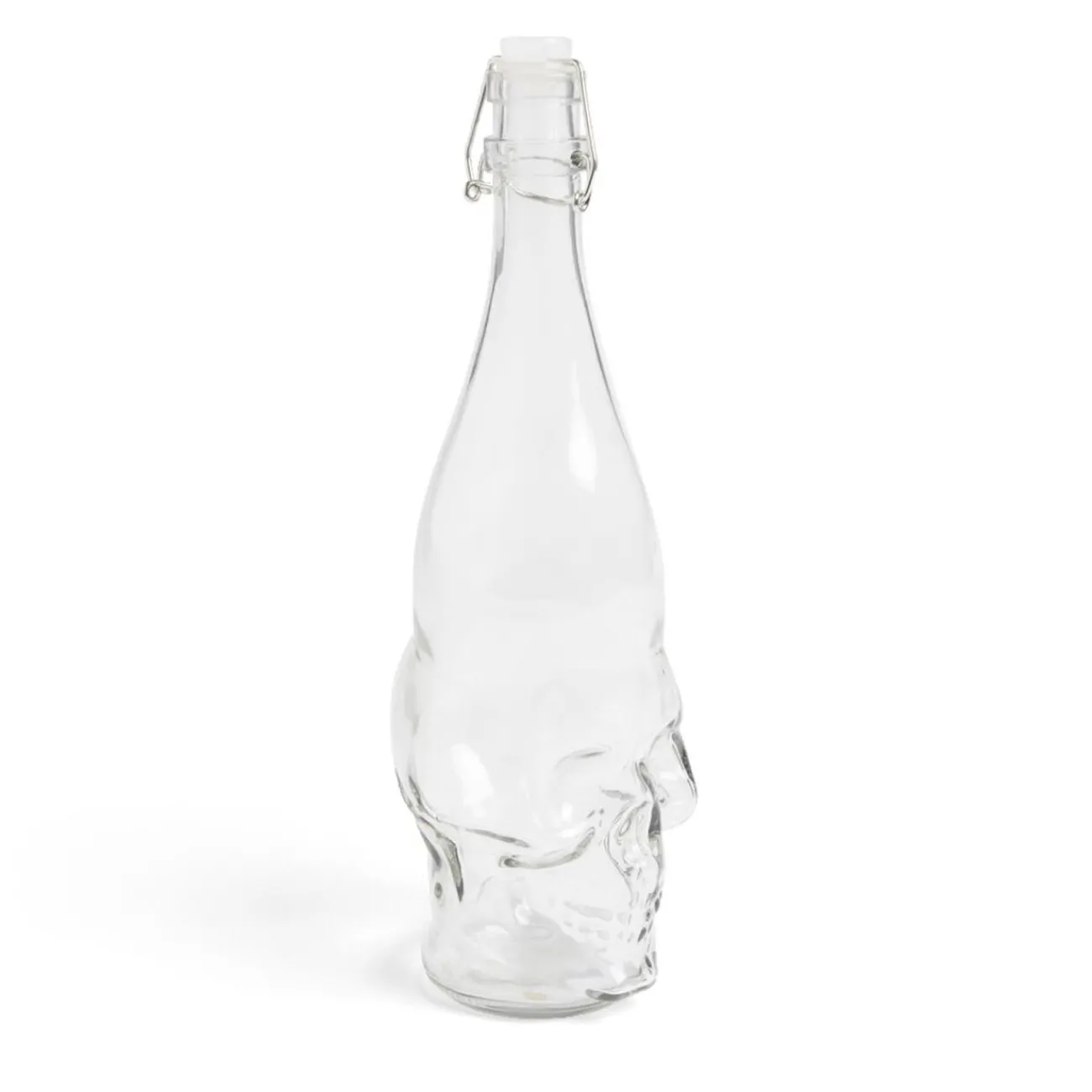 Ajoutez une touche tendance à votre décoration de table à l’occasion d’Halloween avec cette bouteille en verre transparent en forme de tête de mort.