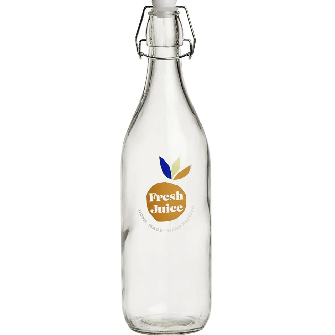 Pour un service au quotidien, cette bouteille en verre transparent motif citron Fresh Juice munie d’un bouchon à fermeture mécanique est idéale.