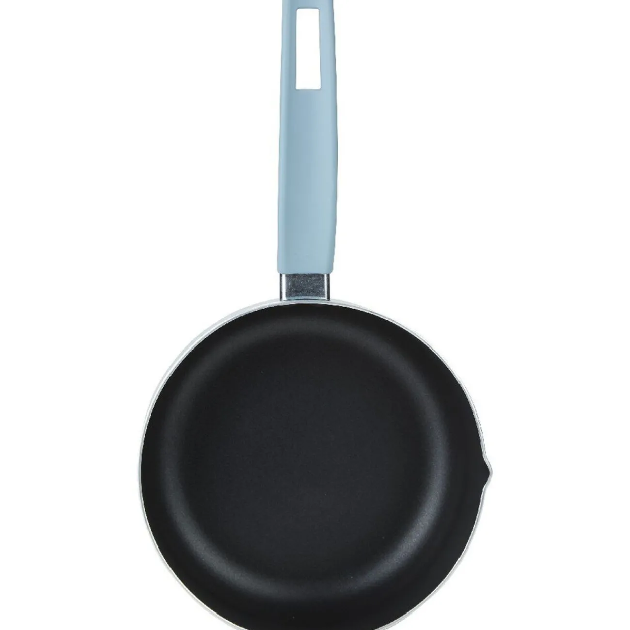 Casserole en aluminium, noire à l’intérieur et bleue à l’extérieur, compatible tous feux.