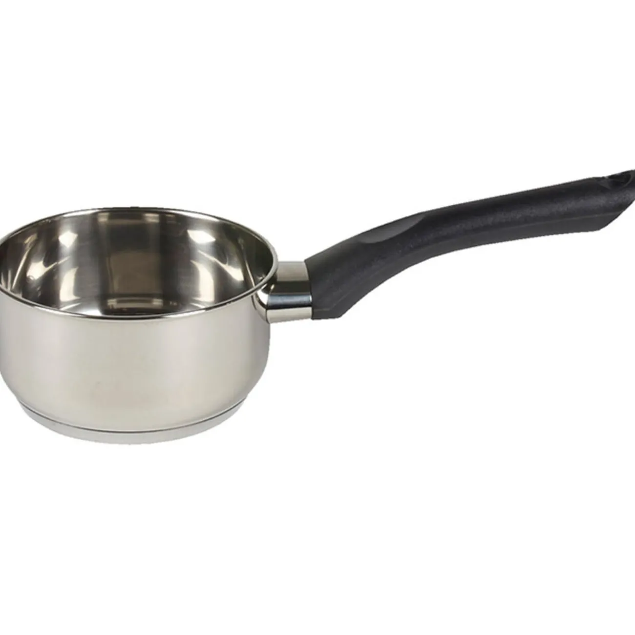 5 casseroles en inox, ø 12, 14, 16, 18 et 20 cm, manche en plastique. Tous feux dont induction.