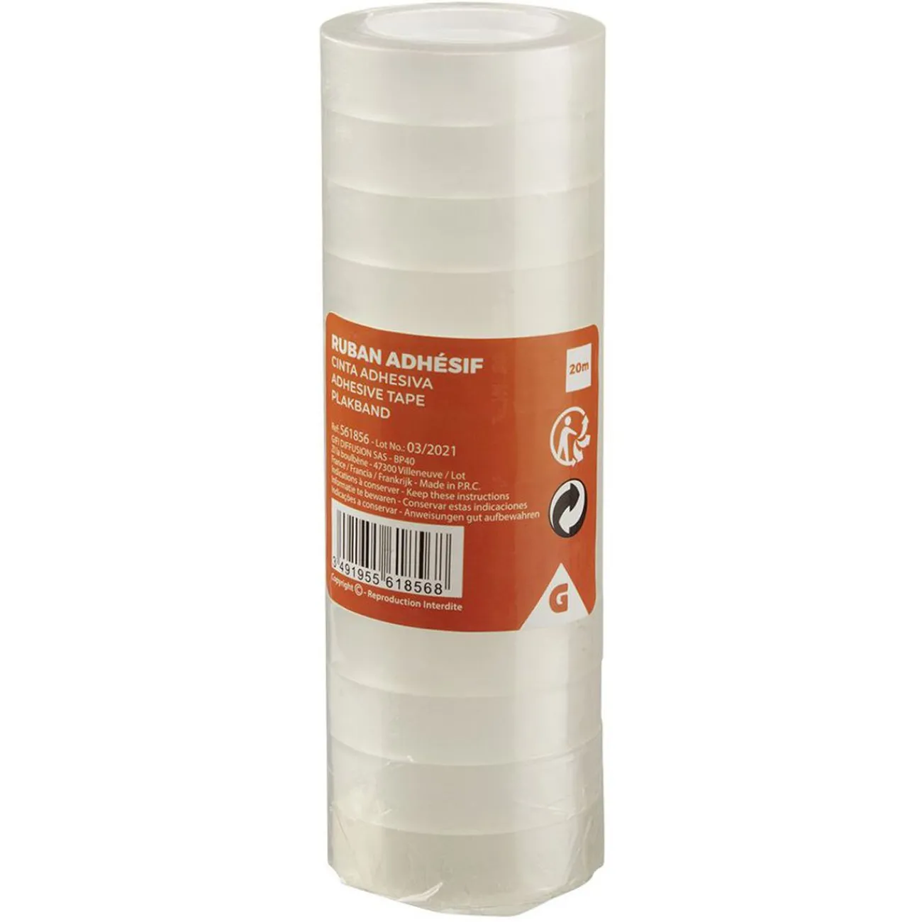 12 rubans d’adhésif blanc de 20 mètres de longueur.