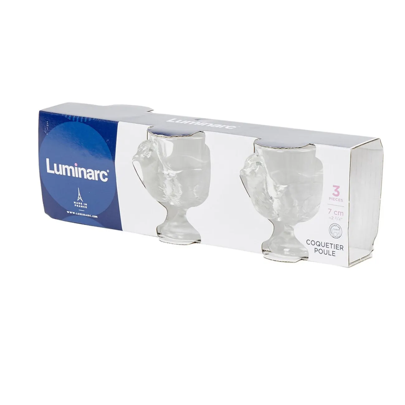 Lot de 3 coquetiers design poule en verre tranparent par Luminarc.
