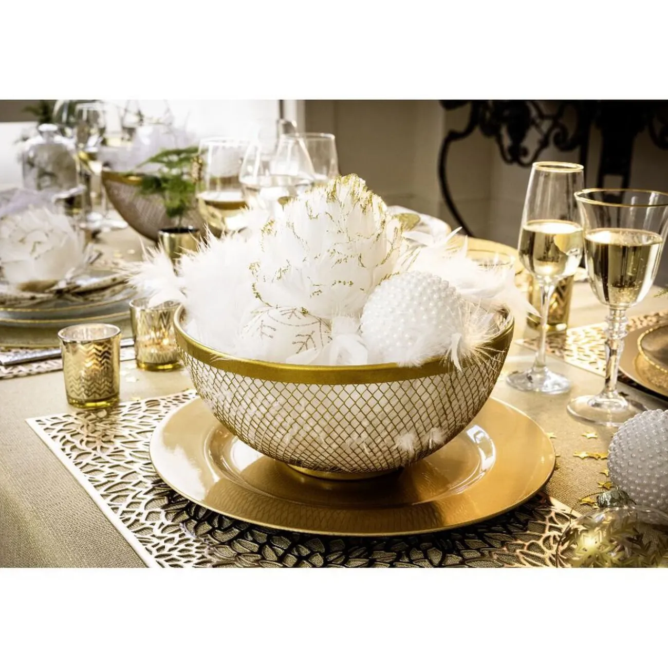 Cette corbeille en métal au maillage doré trouvera aisément sa place sur votre table de fête.