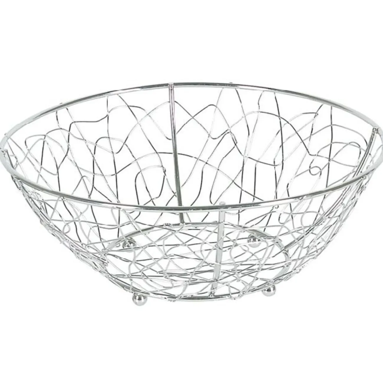 Corbeille à fruits en métal chromé de diamètre 23.5 cm et hauteur 9.5 cm.