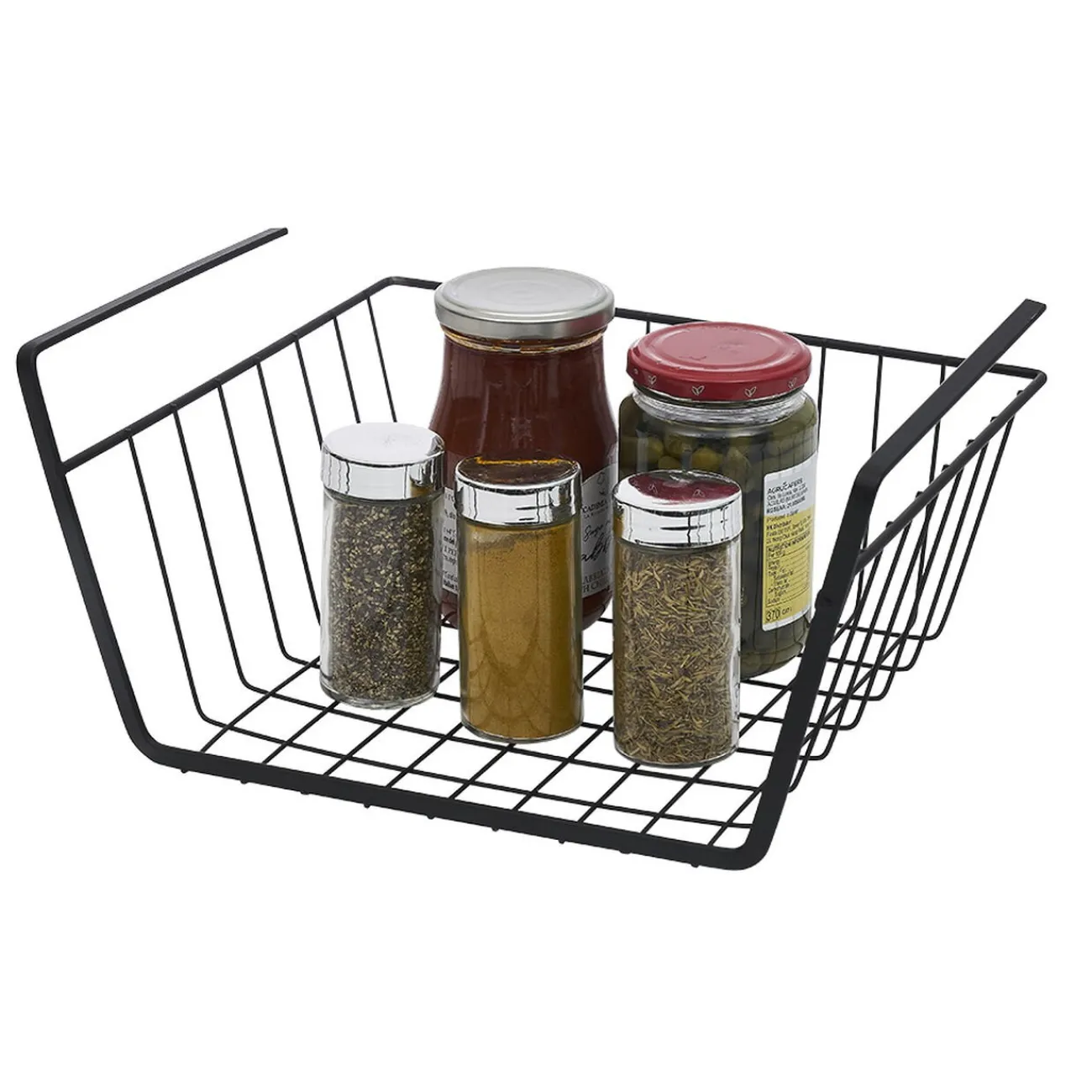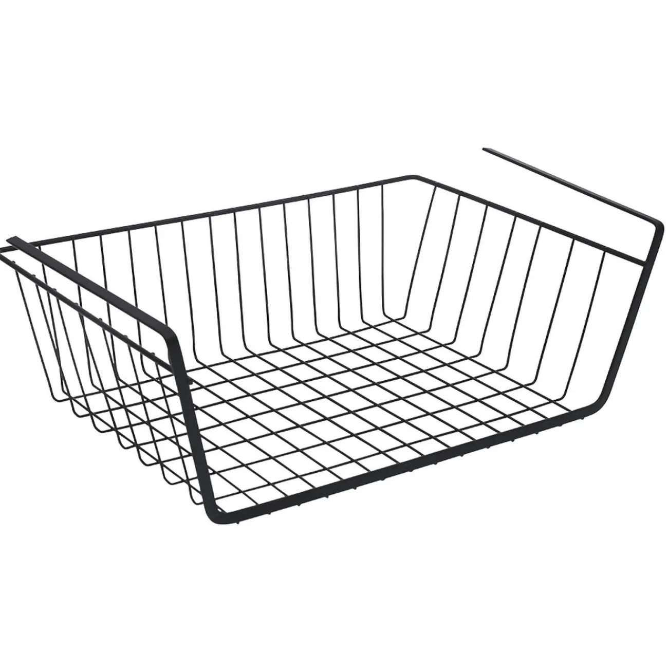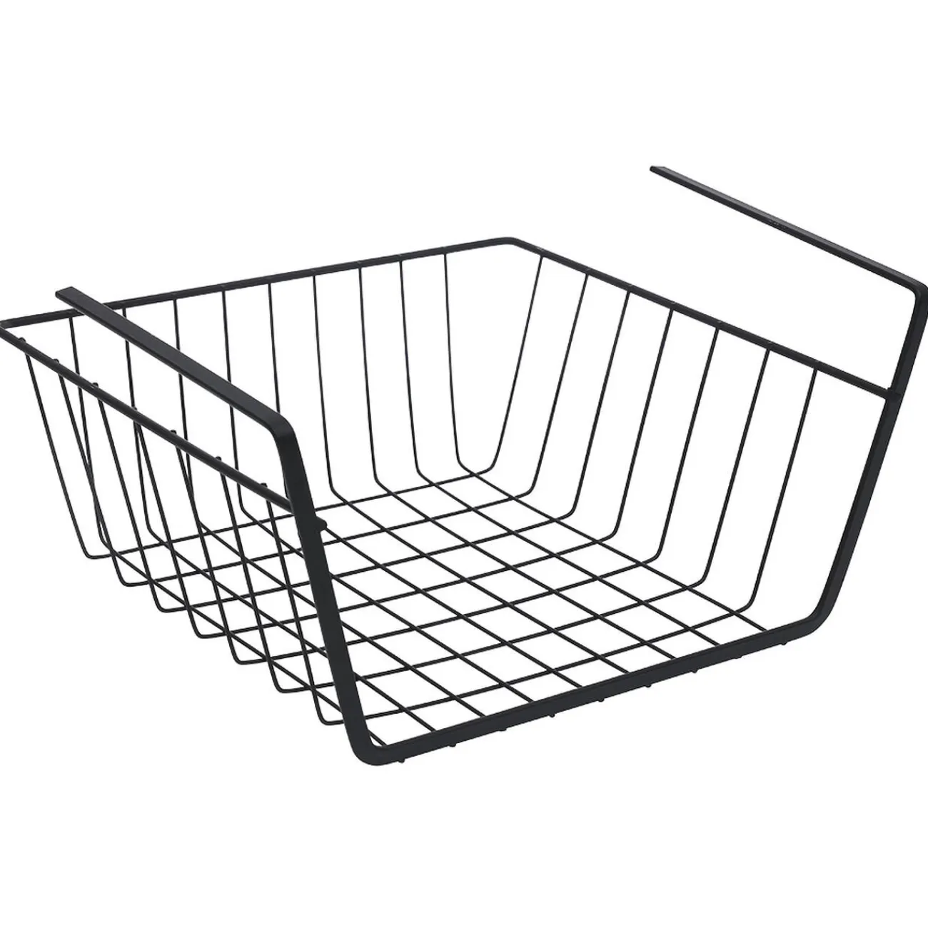 Lot de 2 corbeilles en métal noir à suspendre, parfaites pour optimiser l’espace sous vos placards.
