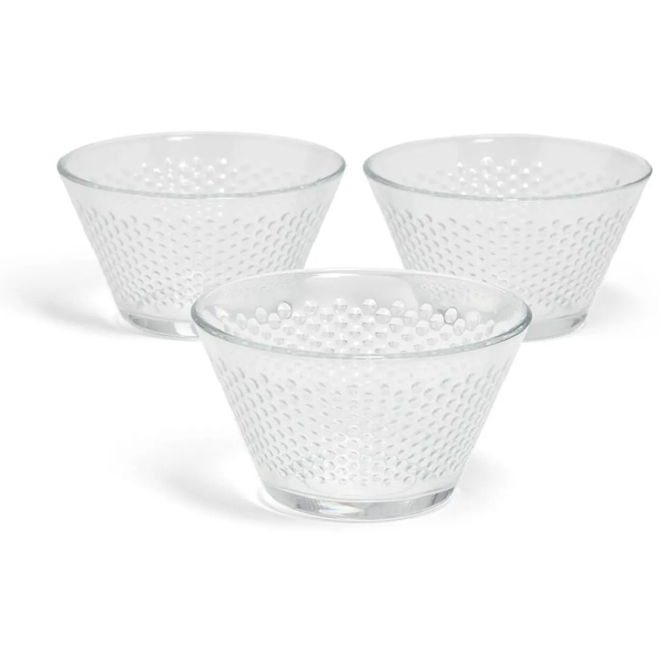 Lot de 3 coupes à dessert en verre transparent, élégantes et raffinées, ornées d’un motif délicat d’écailles en relief.