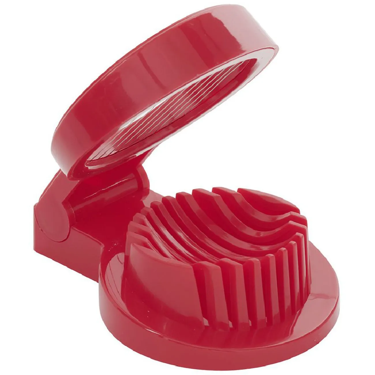 Facilitez vos préparations culinaires avec ce coupe-oeuf rouge.