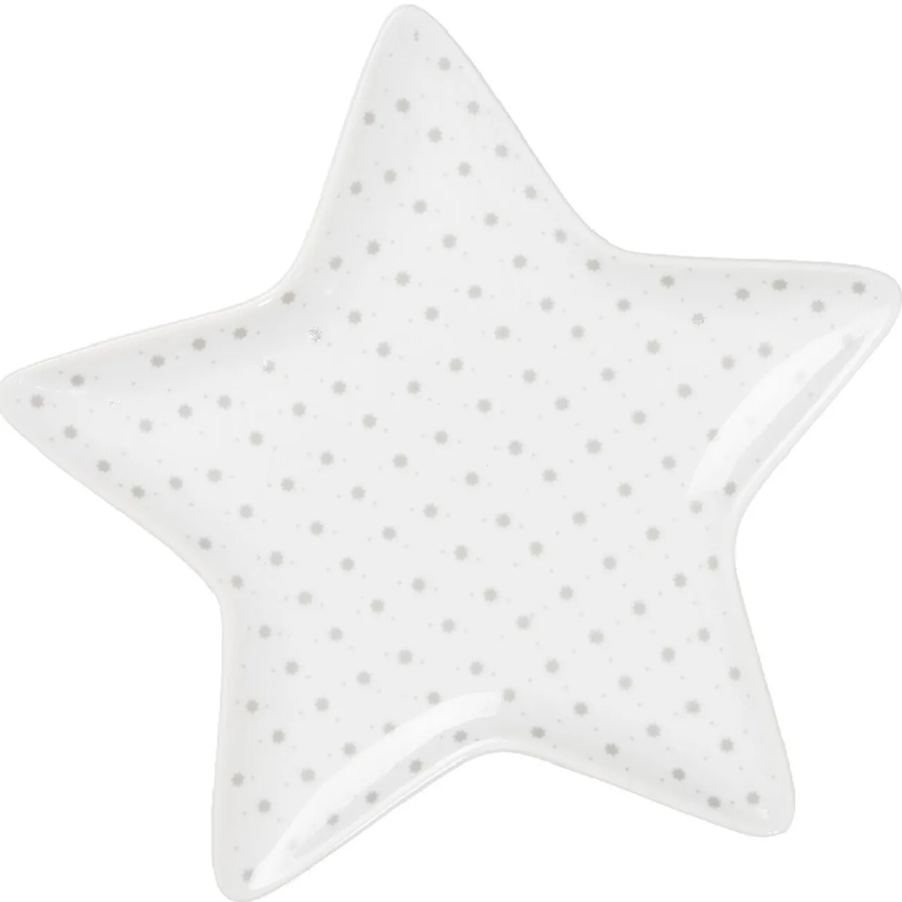 Pour présenter un apéritif ou une entrée de façon originale, placez des brochettes dans cette coupelle blanche à pois gris en forme d’étoile. Elle sera idéale pour un anniversaire ou pour Noël.