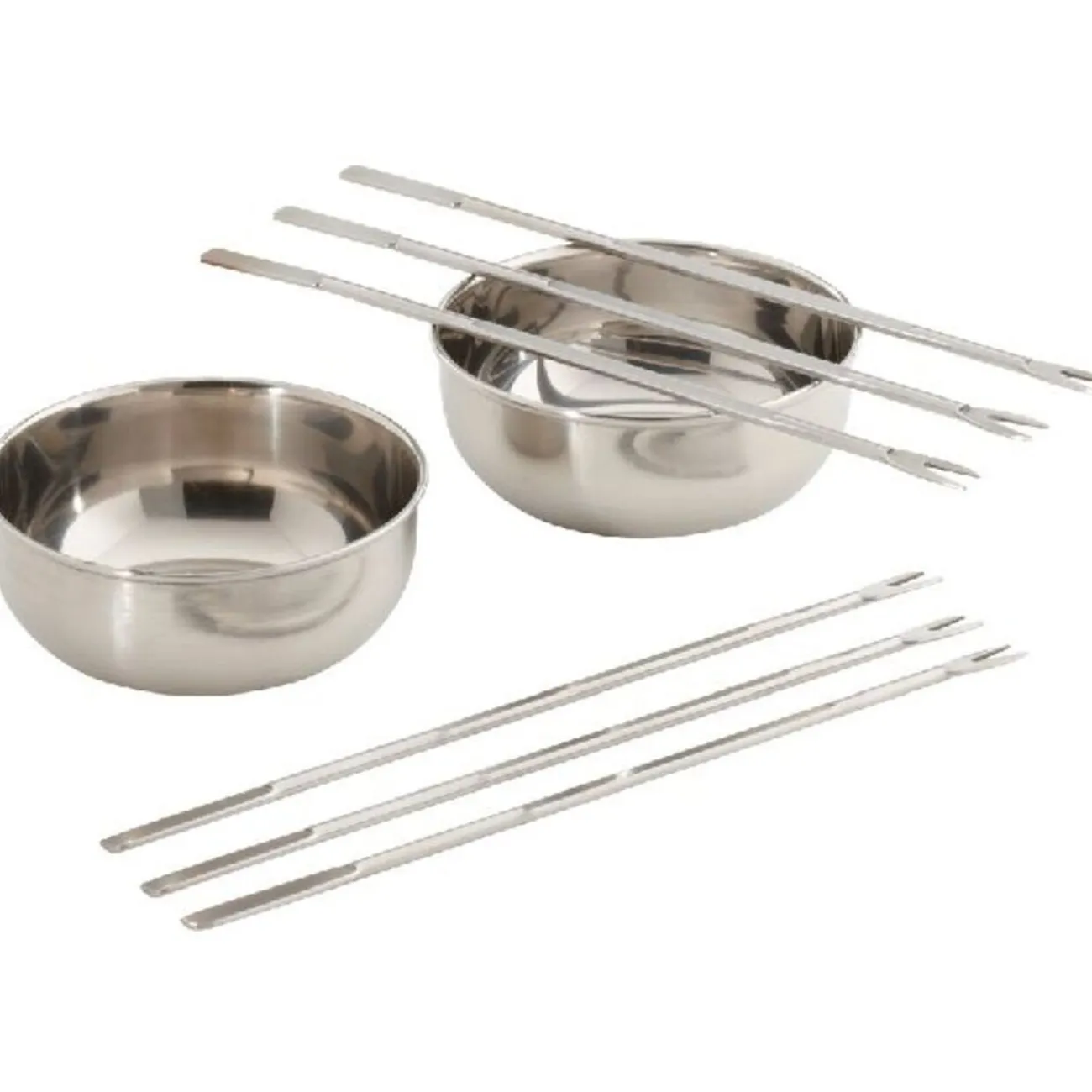 2 coupelles Ø 8 cm, 6 piques l.17 cm, inox.