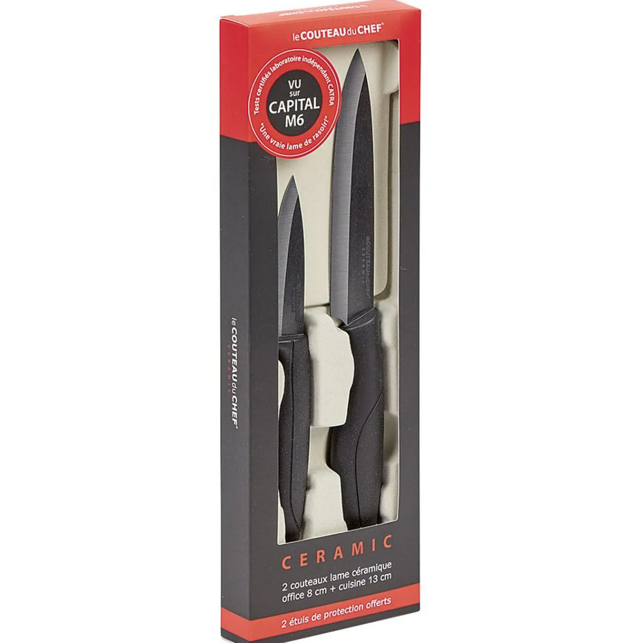Set de deux couteaux avec lame céramique noire, l’un d’office, l’autre de cuisine.