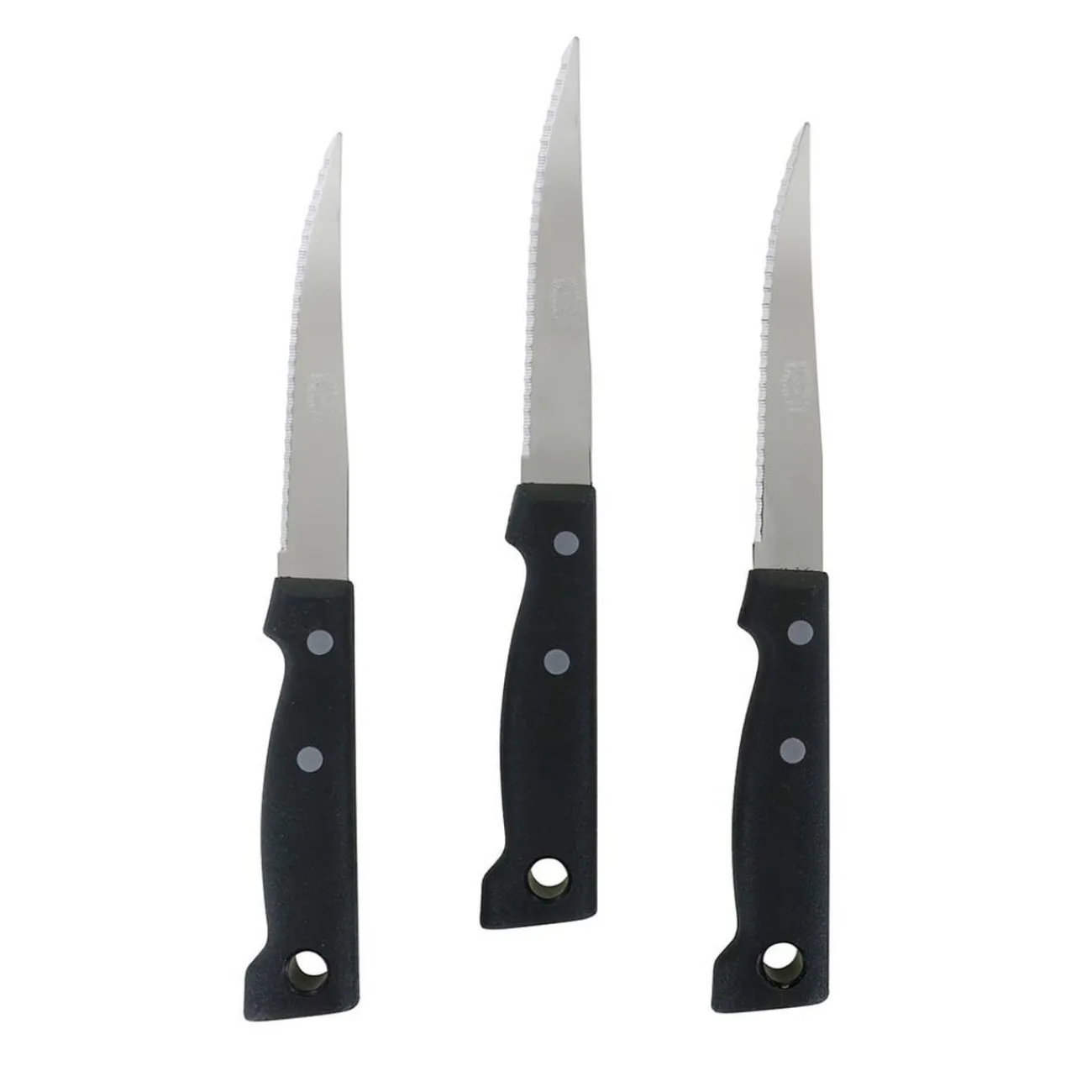 Lot de 3 couteaux à dents avec manche en plastique noir et lame en inox.