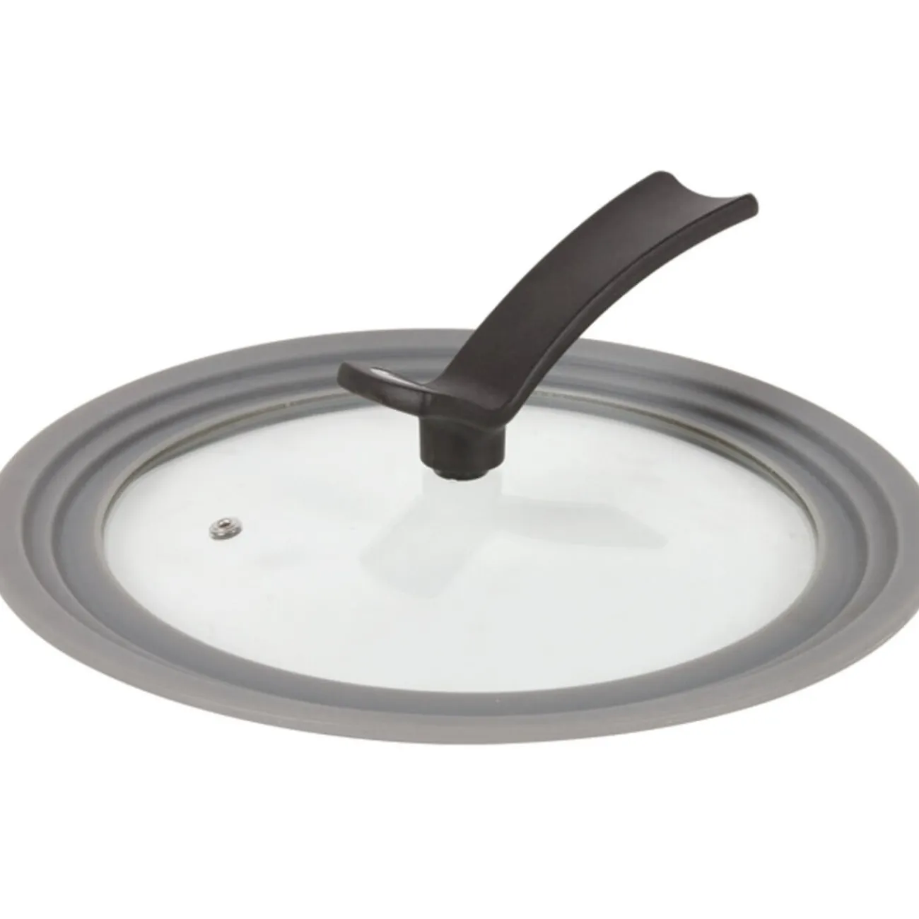 Couvercle rond avec poignée de fixation, verre et silicone, ø 29 cm.