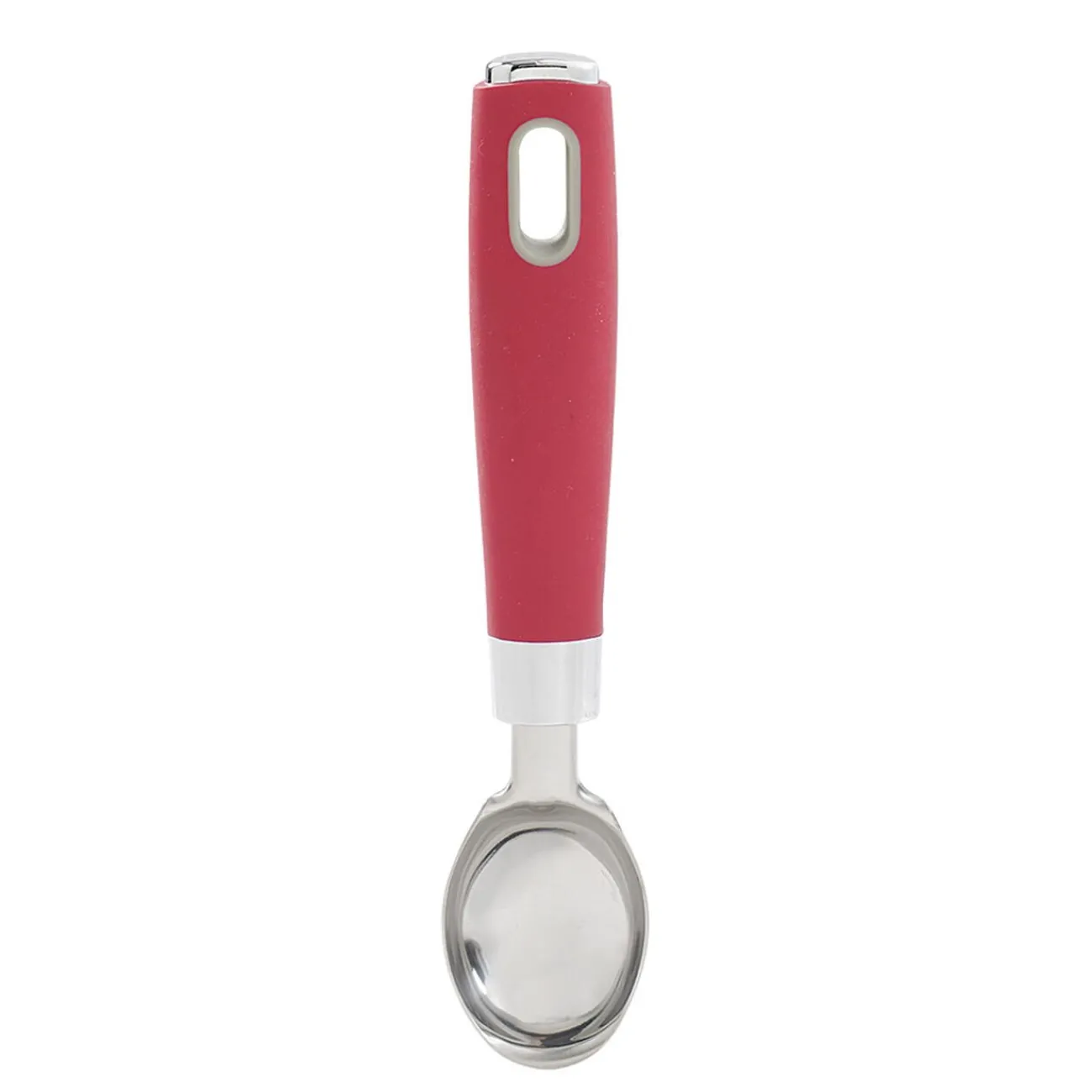 Cuillère à glace en inox avec manche ergonomique en polypropylène rouge. Très pratique pour démouler et servir de belles boules de glaces pour le dessert!