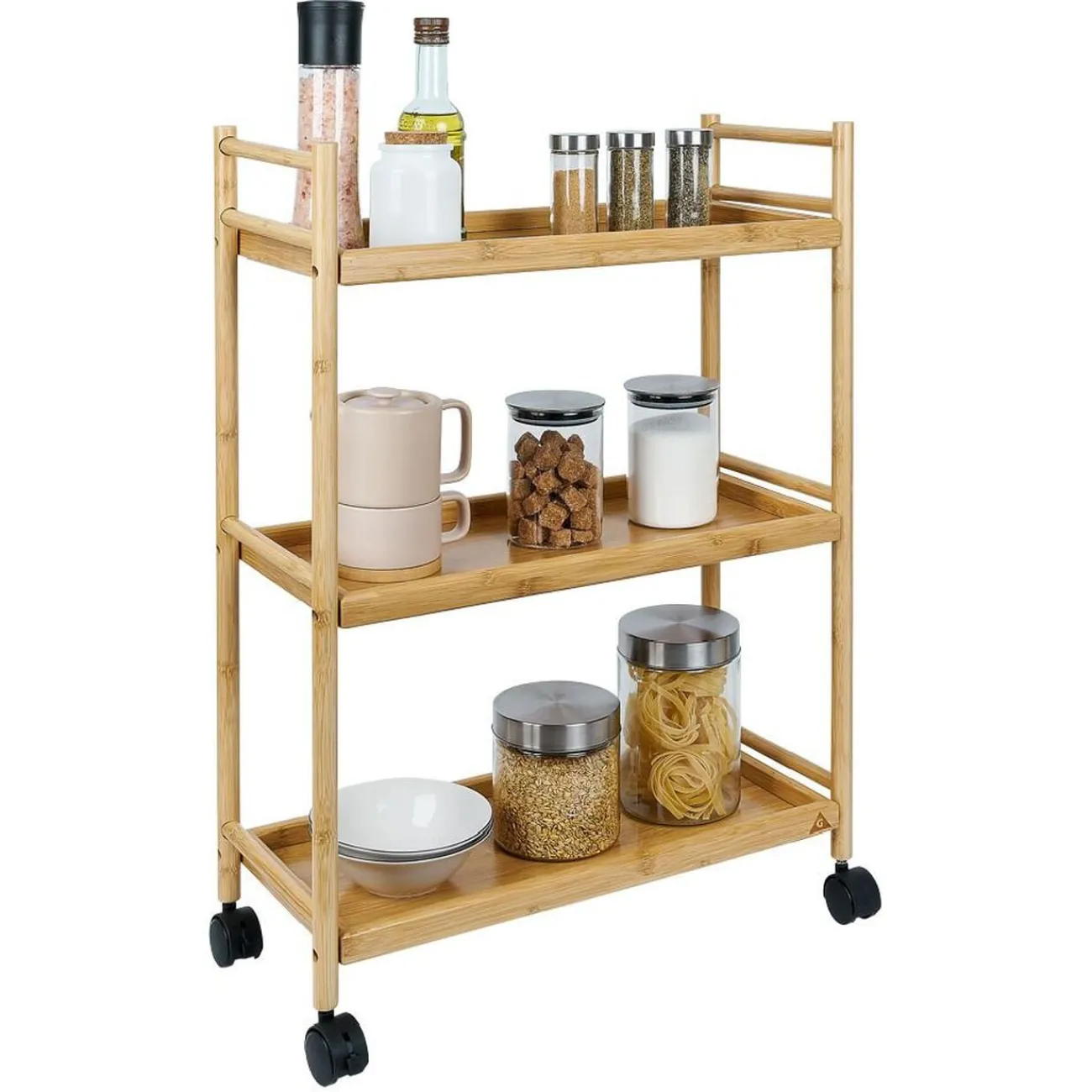 Cette desserte à 3 niveaux est un meuble pratique et esthétique, idéal pour organiser votre espace cuisine de manière élégante.