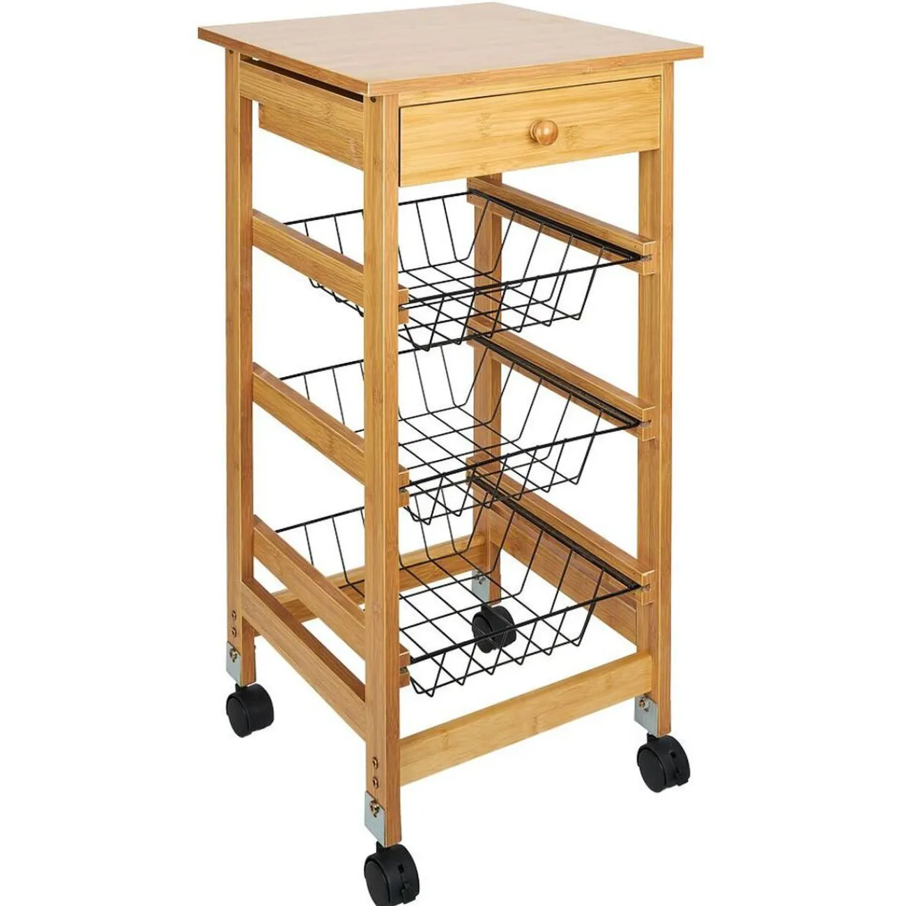 Composée d’un tiroir en bambou fermé et de 3 tiroirs en métal ouvert, elle peut supporter une charge jusqu’à 2 kg par niveau.