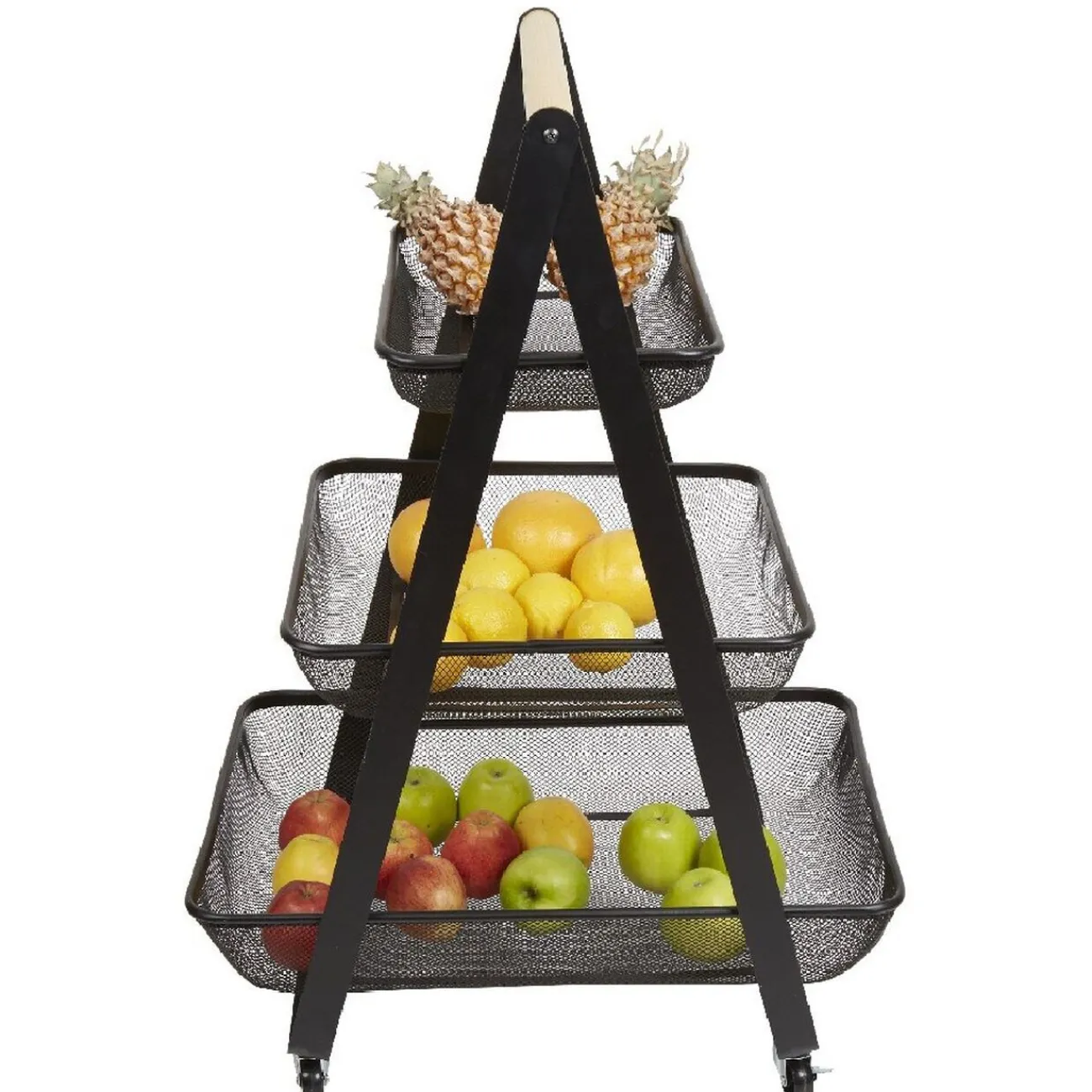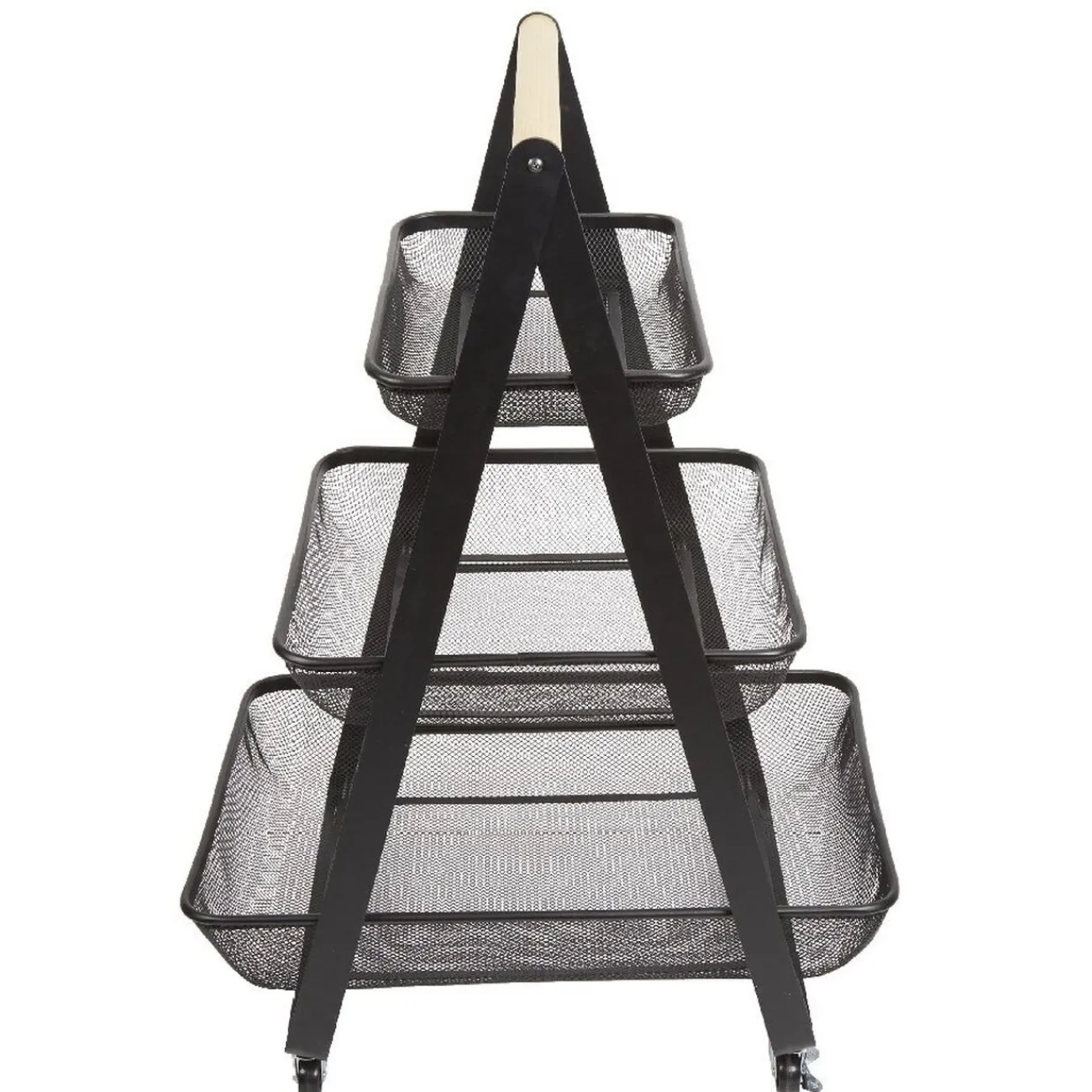 Cette jolie desserte à roulettes esprit vintage industriel est composée de 3 paniers en métal résistant noir pour vous assister avec style à l’intérieur comme à l’extérieur.