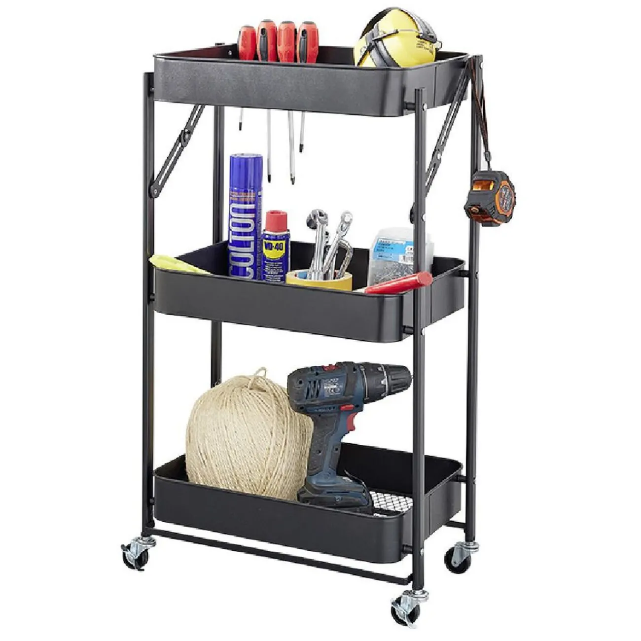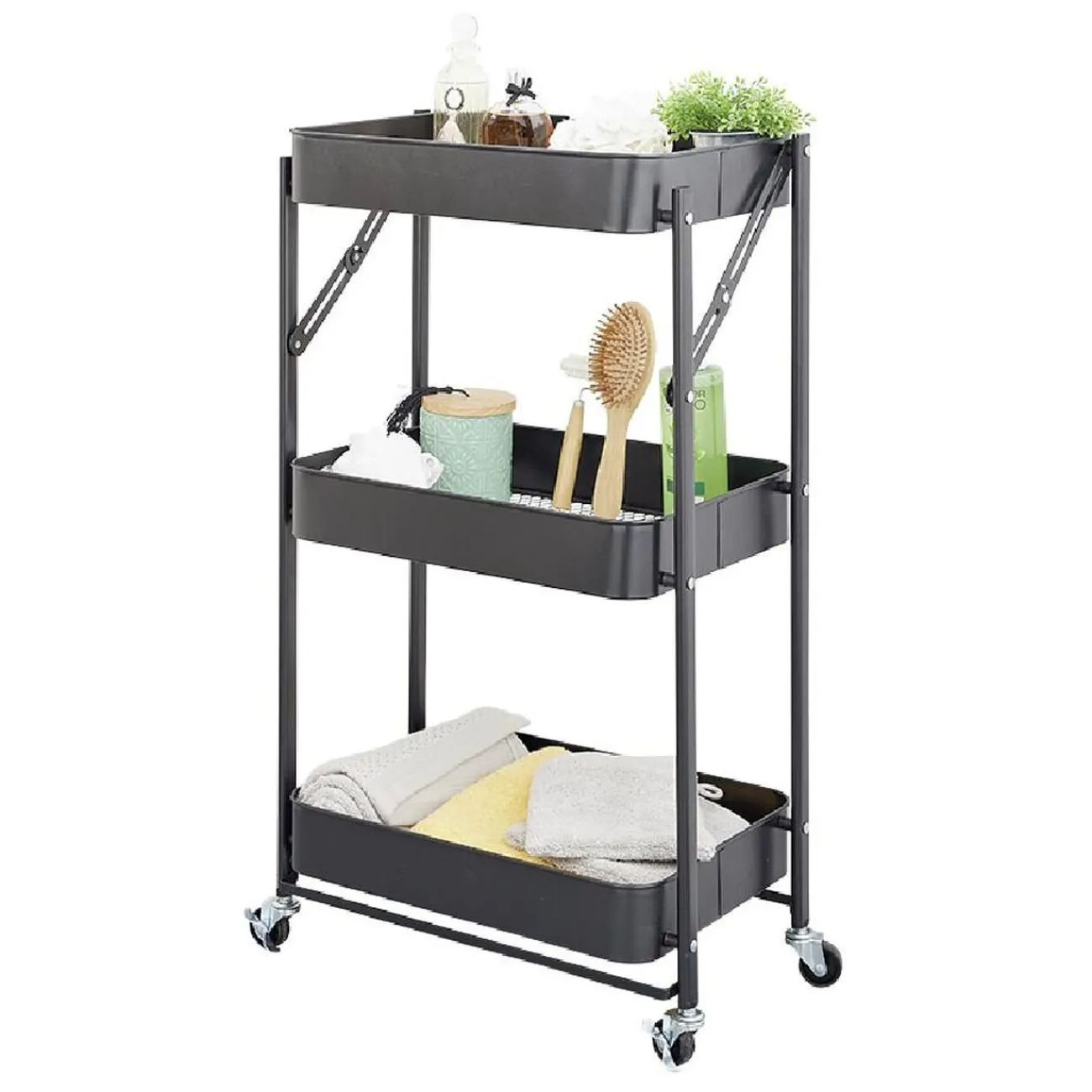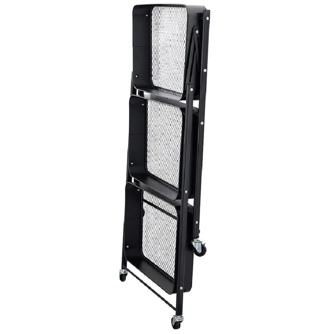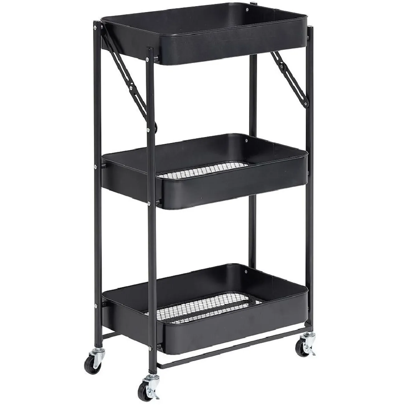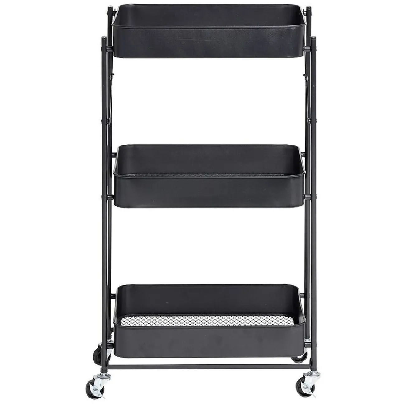 Cette desserte pliable en acier noire sera idéale comme rangement d’appoint dans n’importe quelle pièce de la maison.