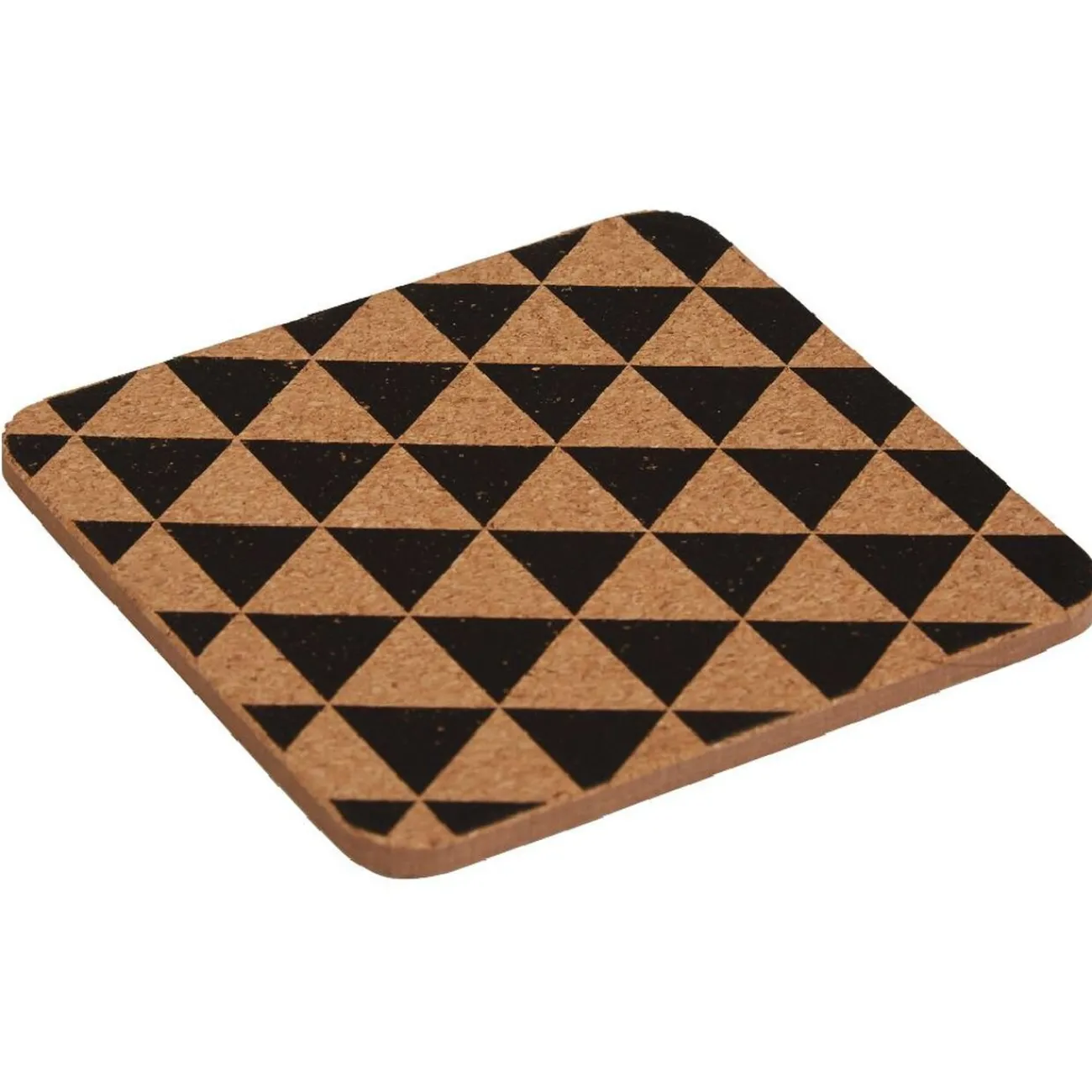 Lot de 4 dessous de verre en liège à motifs géométriques noirs, en plus de protéger votre table ils contribuent à apporter un vent de modernité à votre intérieur.