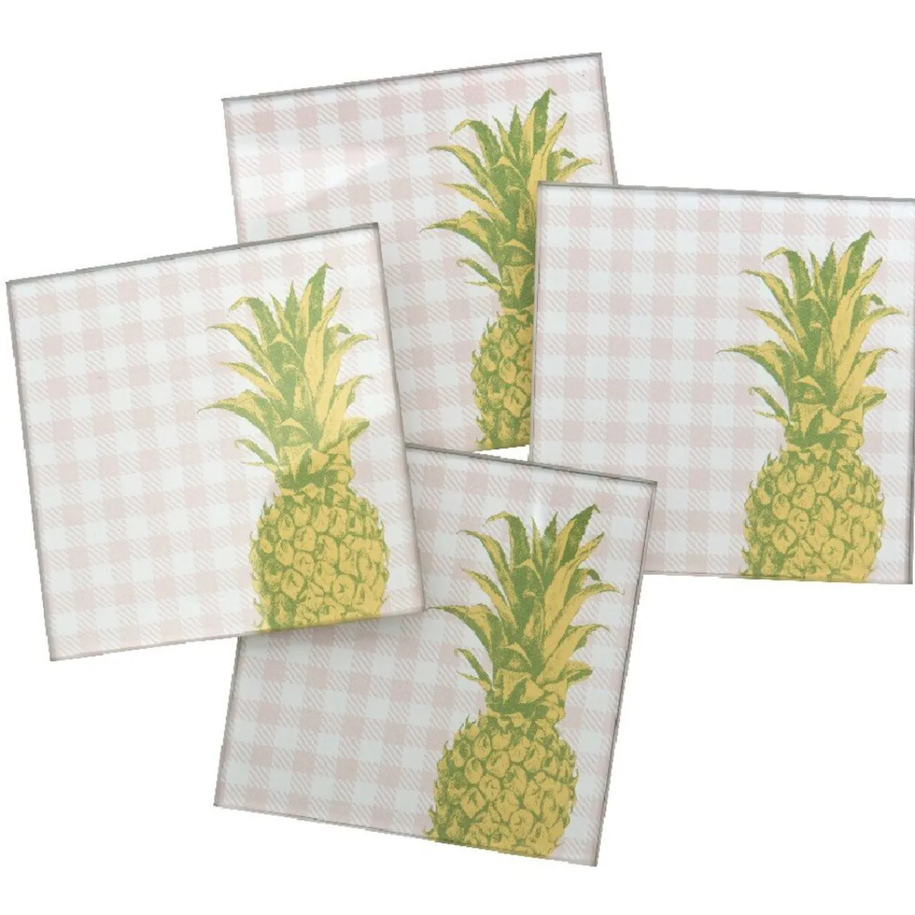 Dans la collection « Sweet exotic »: Lot de 4 dessous de verre en verre disponibles en 2 designs ananas ou flamant rose. Dimension 9 x 9 cm.