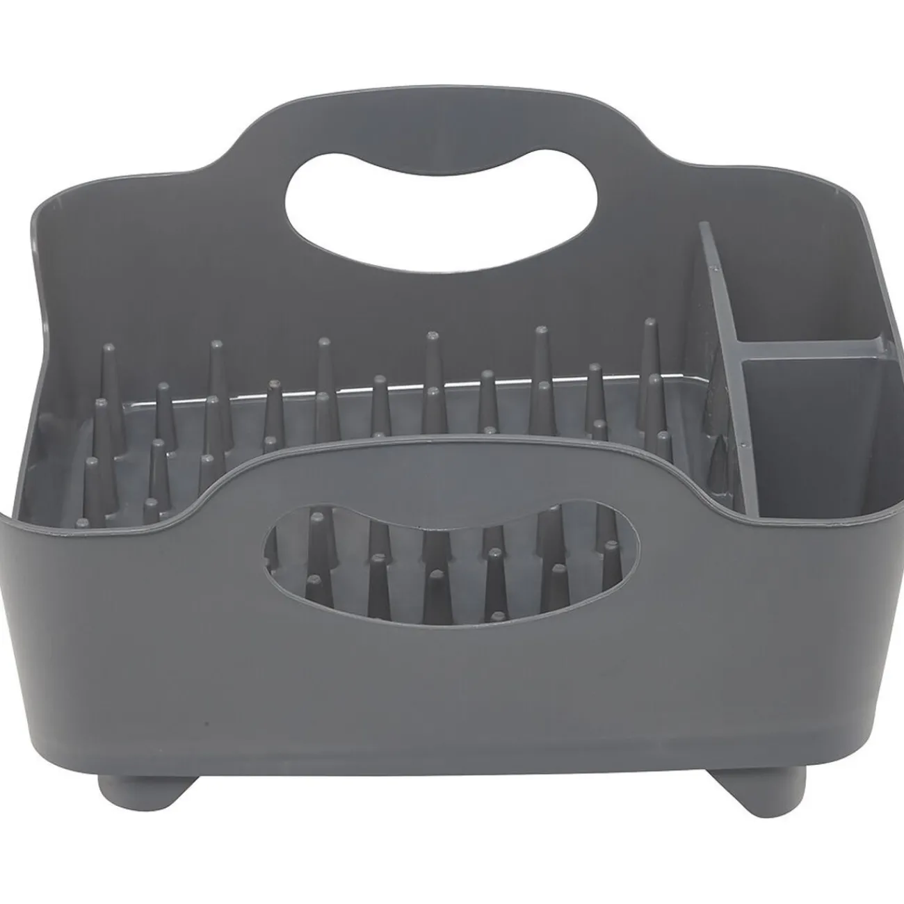 Égouttoir à vaisselles gris foncé avec 2 emplacements pour les couverts.