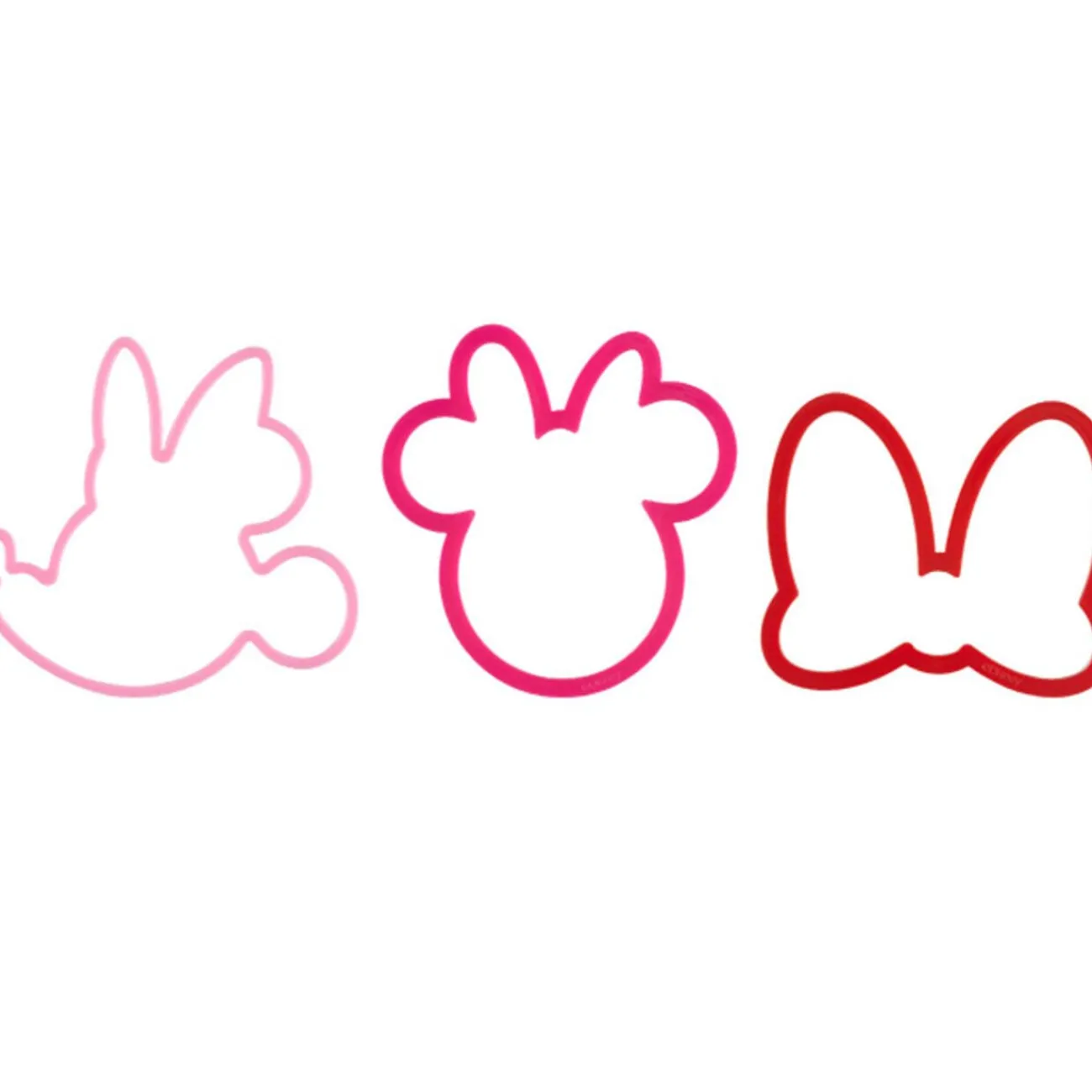 3 emportes-pièce Disney, dim. 9×7,5 cm, 9×9,5 cm et 9,5×9 cm, plastique.