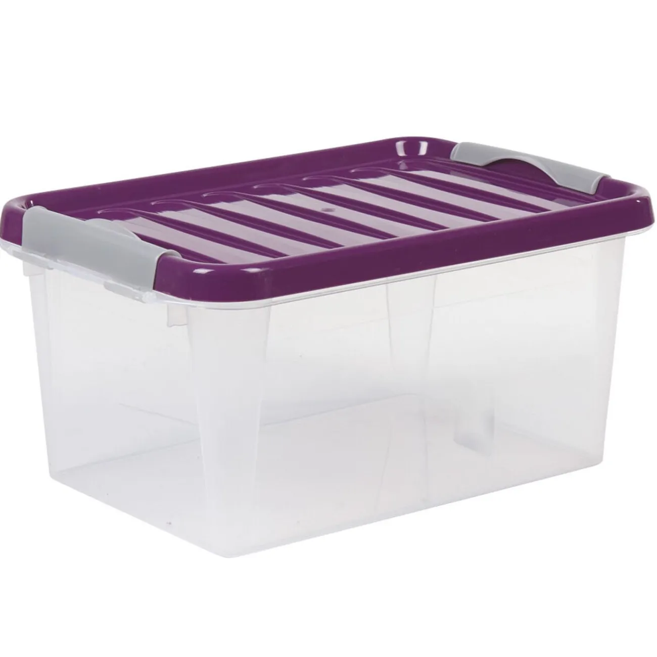 Boîte de rangement avec clips 8 L, couvercle violet, dim. 34x23xh.16 cm, polypropylène.