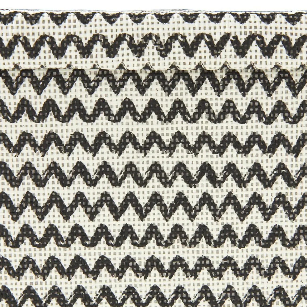 Boîte de rangement pliable avec couvercle à motif zig zag noir et blanc.