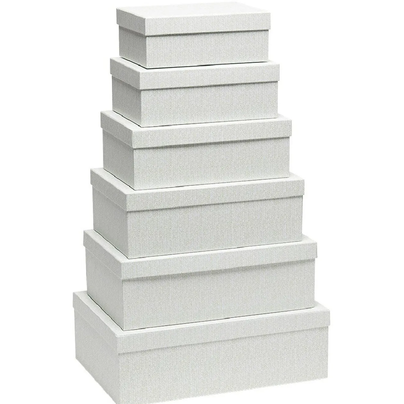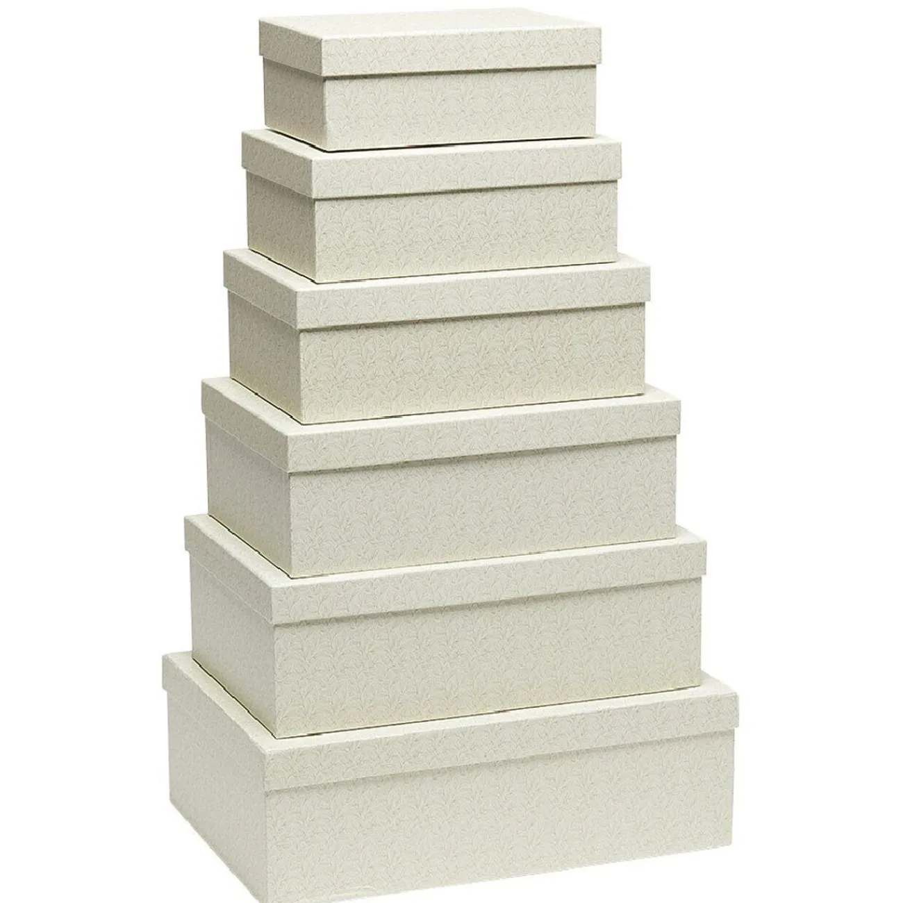 Lot de 6 boîtes gigognes en carton uni de tailles différentes.