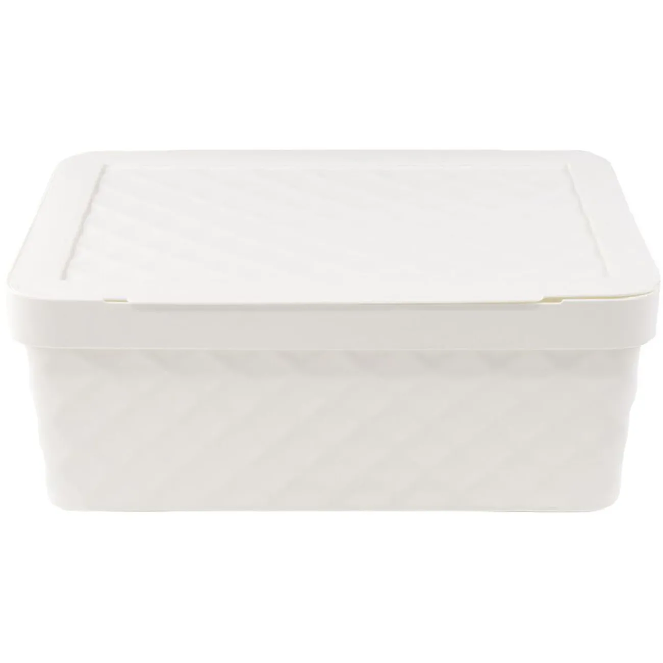Boîte de rangement avec couvercle en plastique blanc design relief.