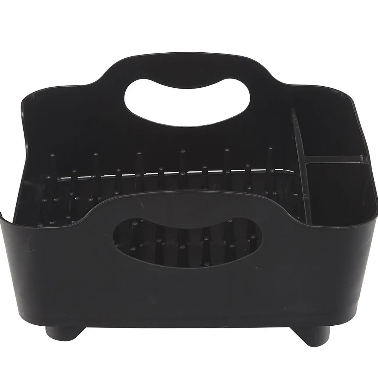 Égouttoir à vaisselles noir avec 2 emplacements pour les couverts.