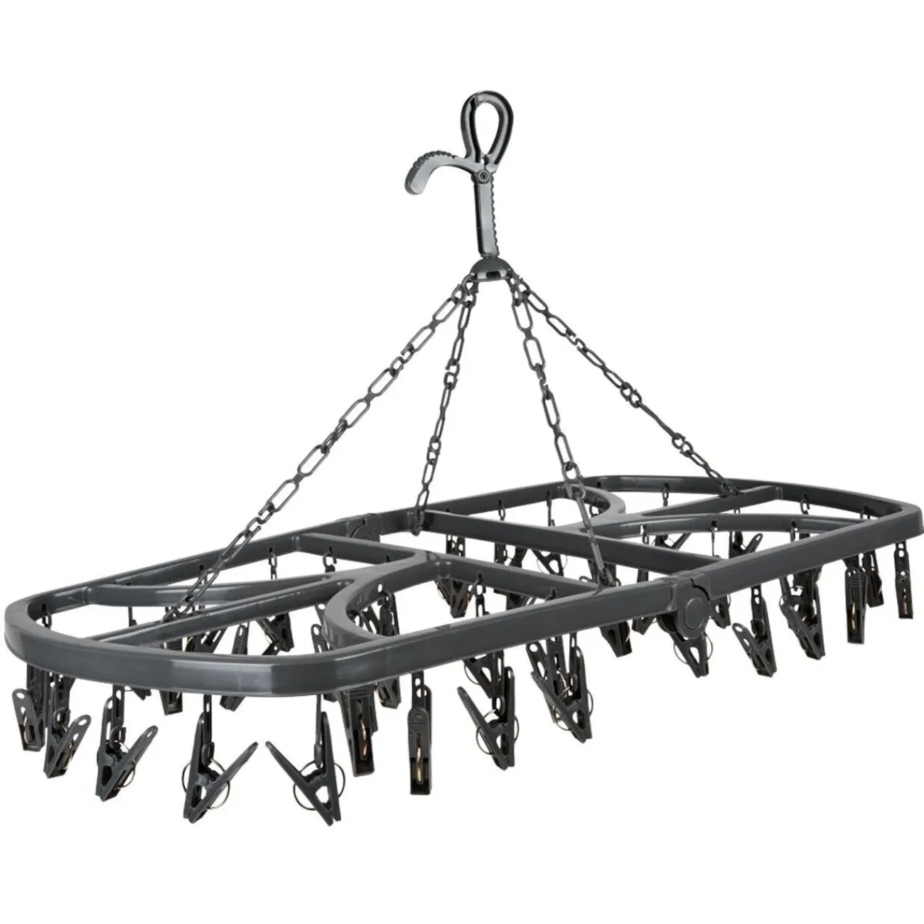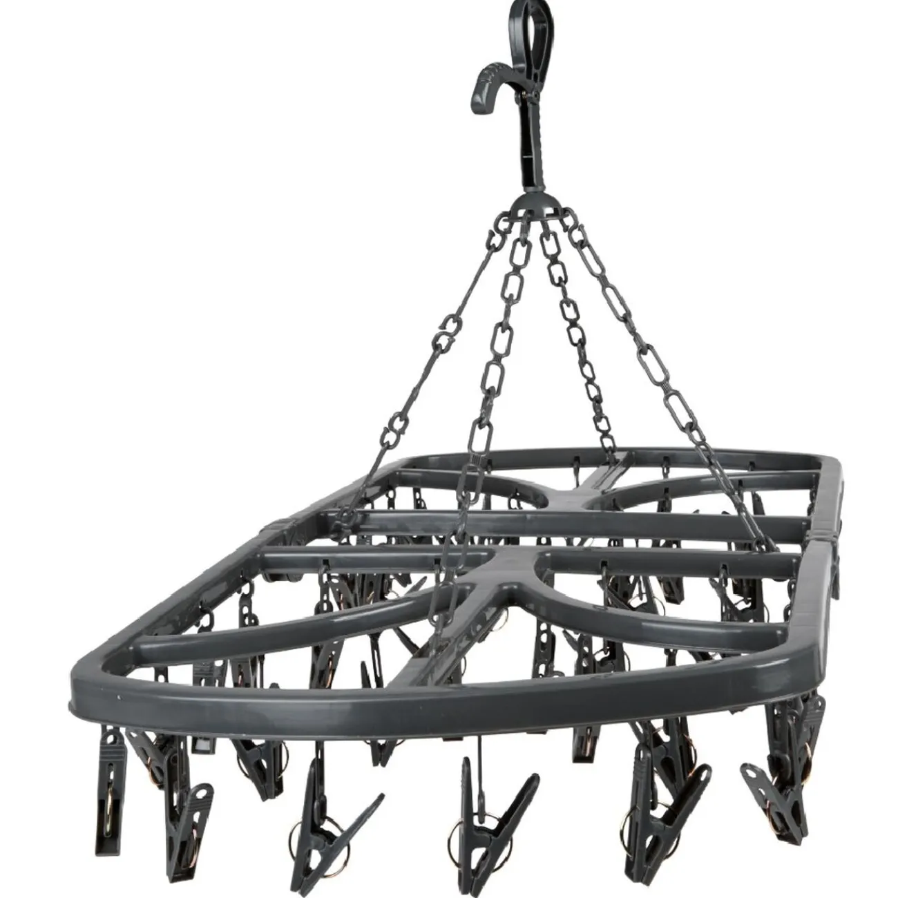 Séchoir à suspendre équipé de 44 pinces et d’un crochet pour faire sécher en hauteur vos chaussettes, lingerie et autre linge de petite taille.