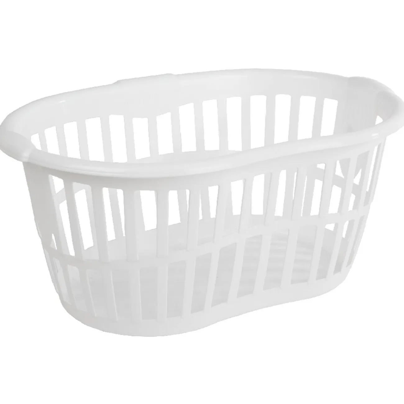 Idéal pour transporter votre linge, ce panier à linge ovale et blanc d’une contenance de 30 litres, est moins encombrant grâce à sa forme incurvée qui épouse les formes du corps.