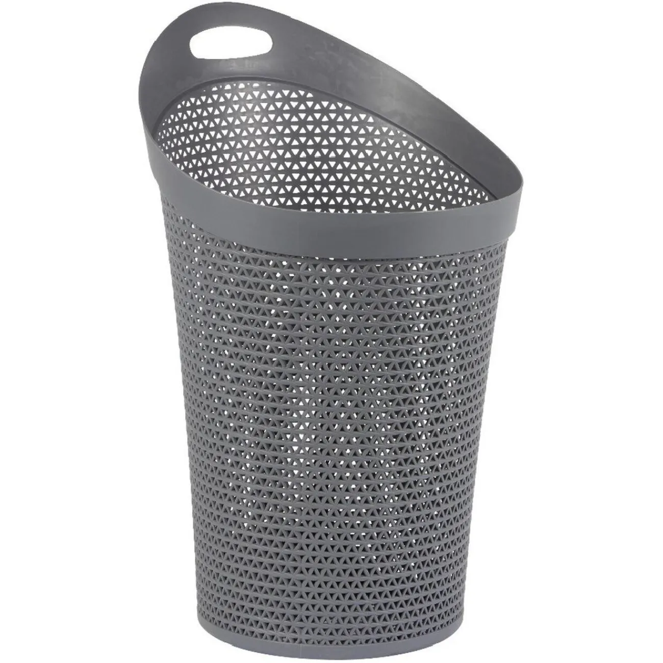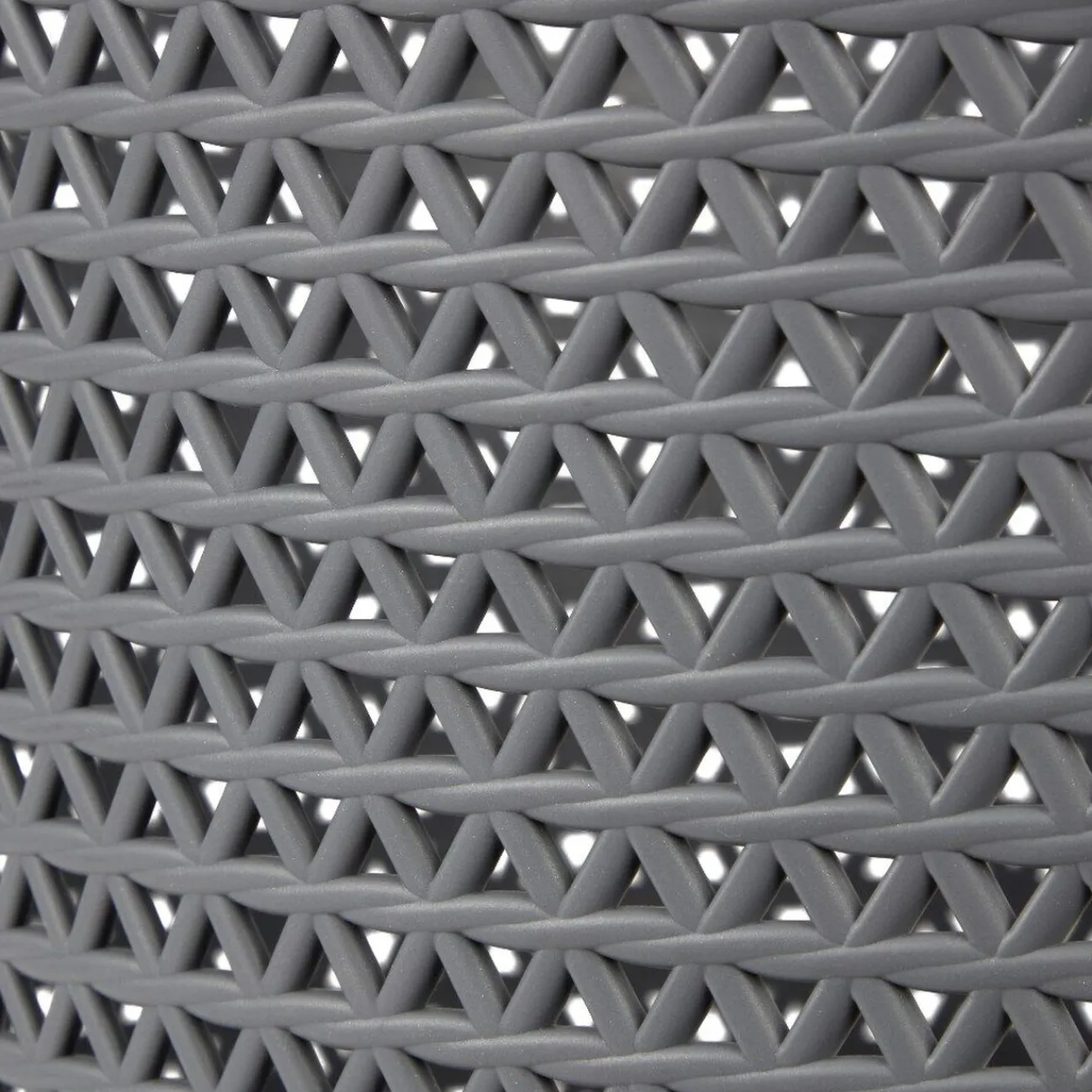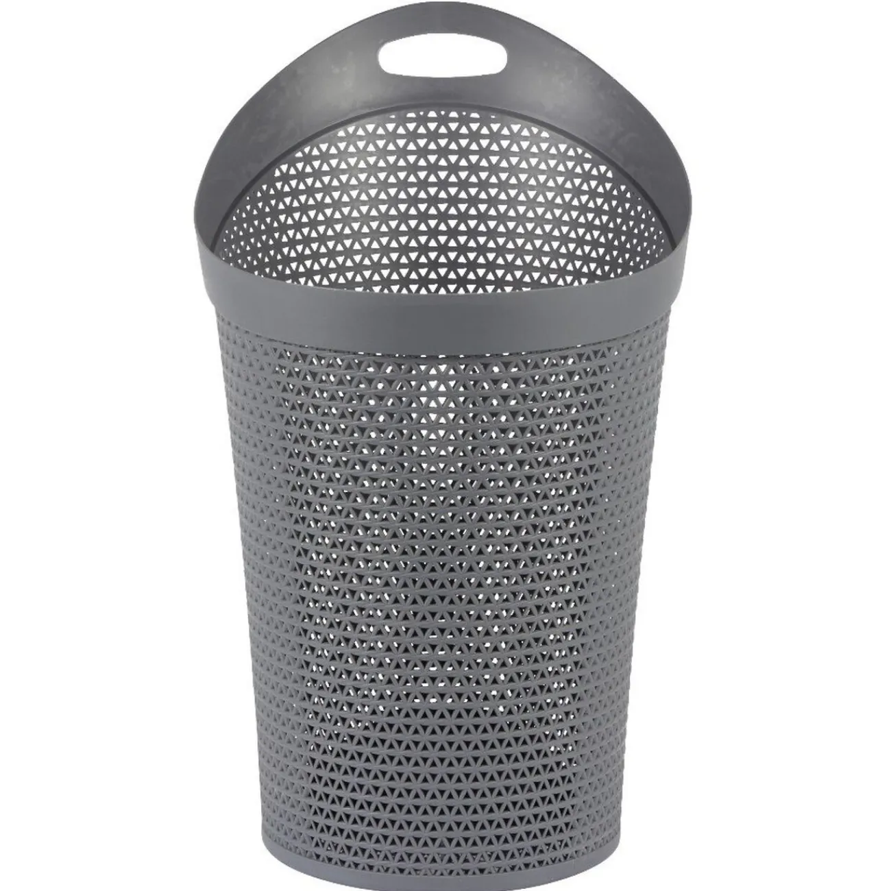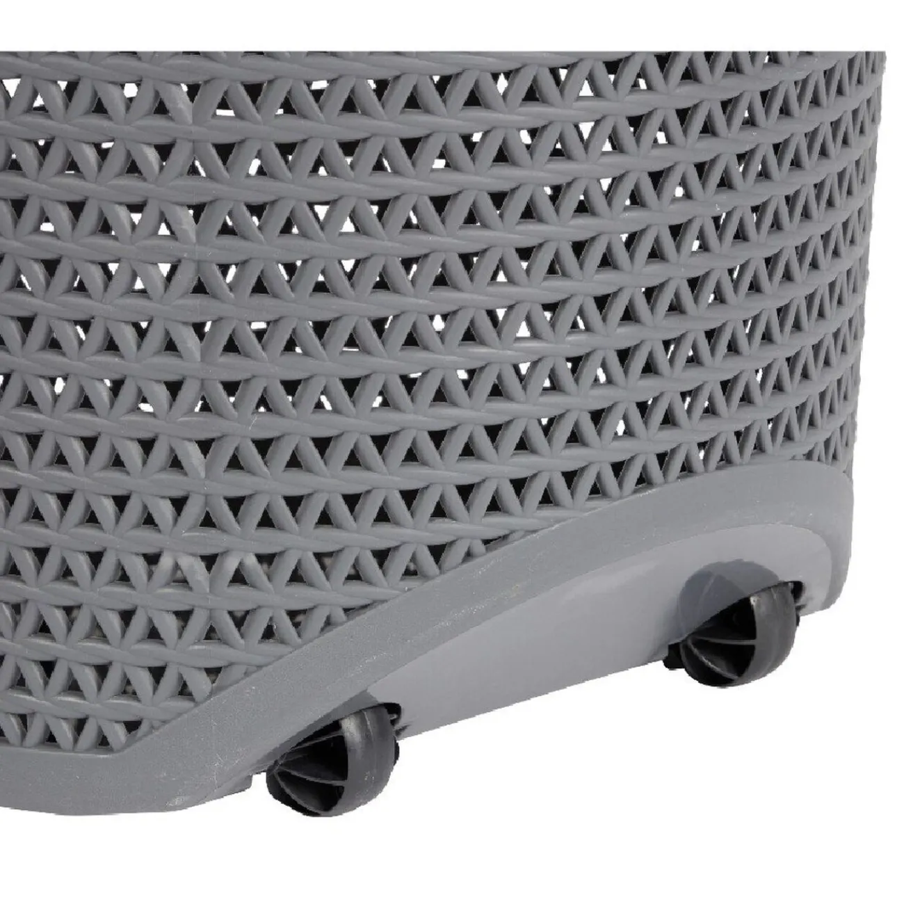 Panière à linge grise effet tressé de forme ovale.