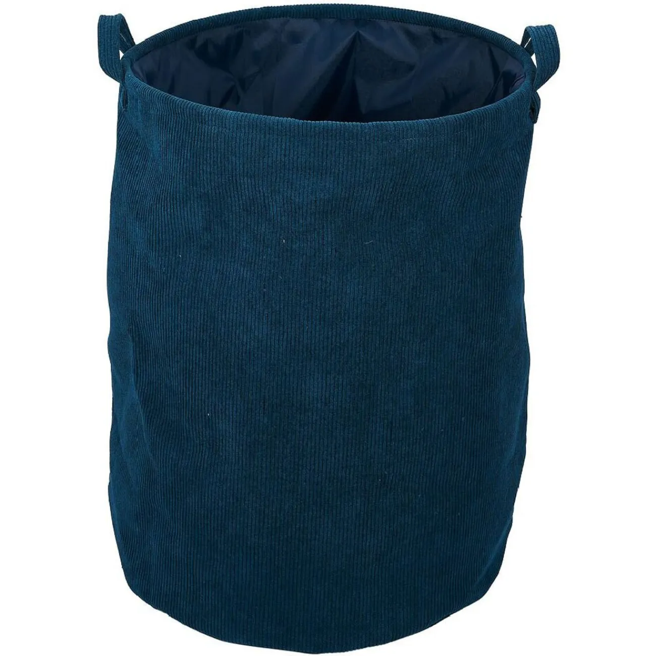 Fabriquée en polyester effet velours côtelé bleu, cette panière apporte une touche de sophistication à votre espace.