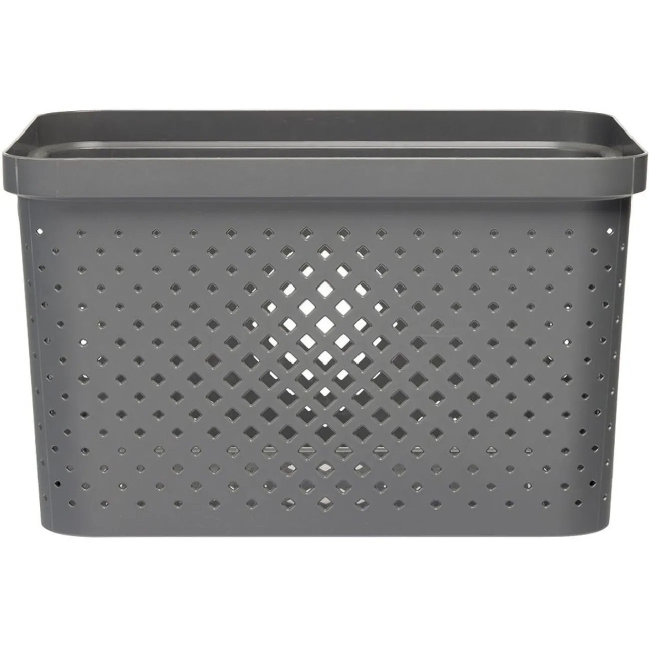 Son design ajouré en plastique gris se fondra aisément dans toutes vos pièces de rangement.